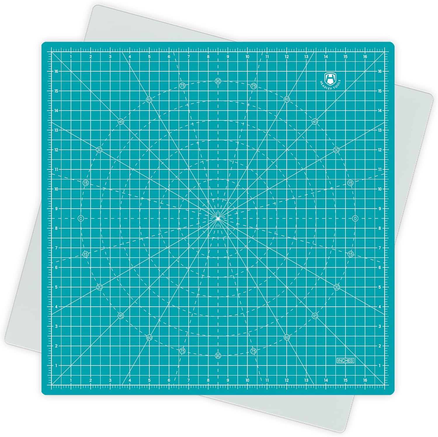 Headley Tools 17"x17" Rotating Cutting Mat, Self Healing Mat with 360-Degree Rotation & Anti-Slip Base, Sewing Board Cutting Mat Perfect for Fabric Quilting Leather Hobby Project, Turquoise