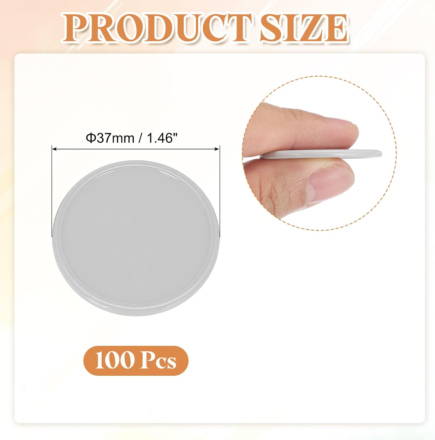 - Size & Packaging - The package contains 100 pcs of light gray plastic poker chips, measuring 1.46 inches (37mm) in diameter. The edge of each plastic chip is higher than the middle, and the surface is smooth, which makes it convenient for picking up.