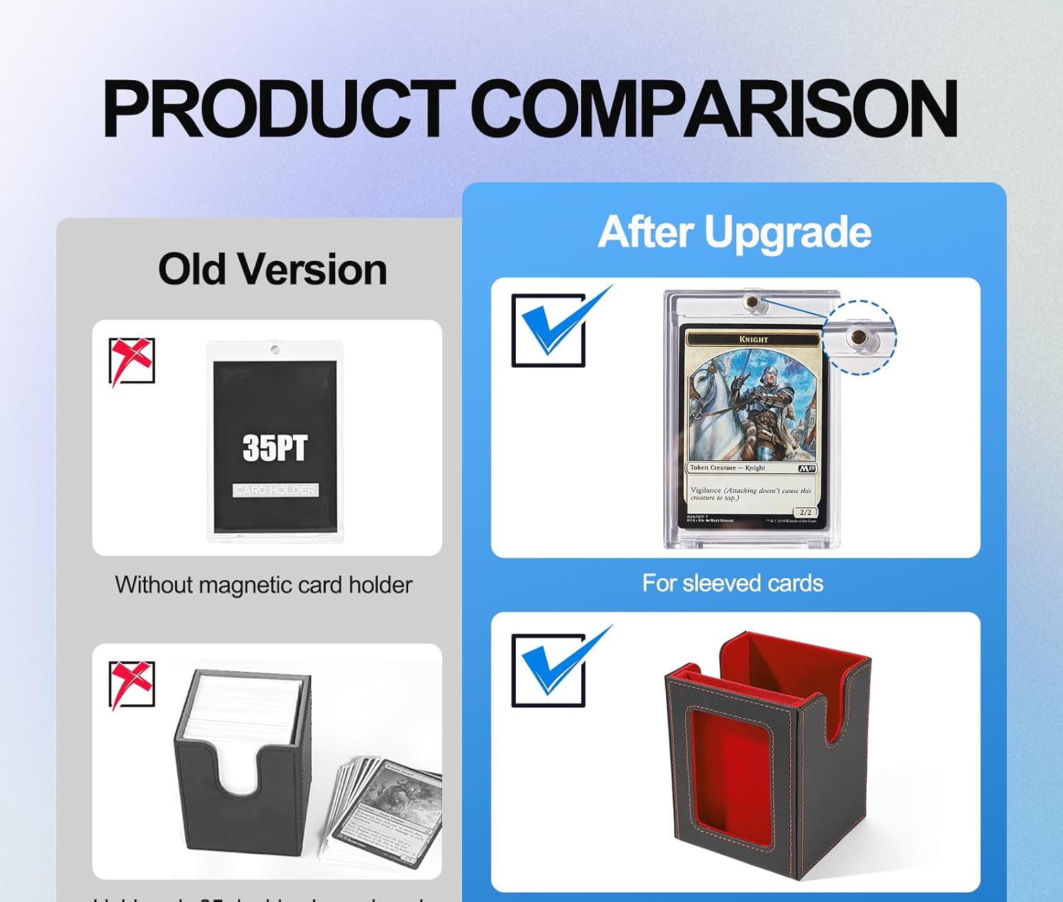 - 【Applicable Scenario】Suitable for players who love MTG Commander, collect TCG/PTCG, or are passionate about sports decks. It is perfect for card collectors and easy to carry when playing card games with friends or family. The design and functionality of this card case meets their needs to protect and appreciate their collection.