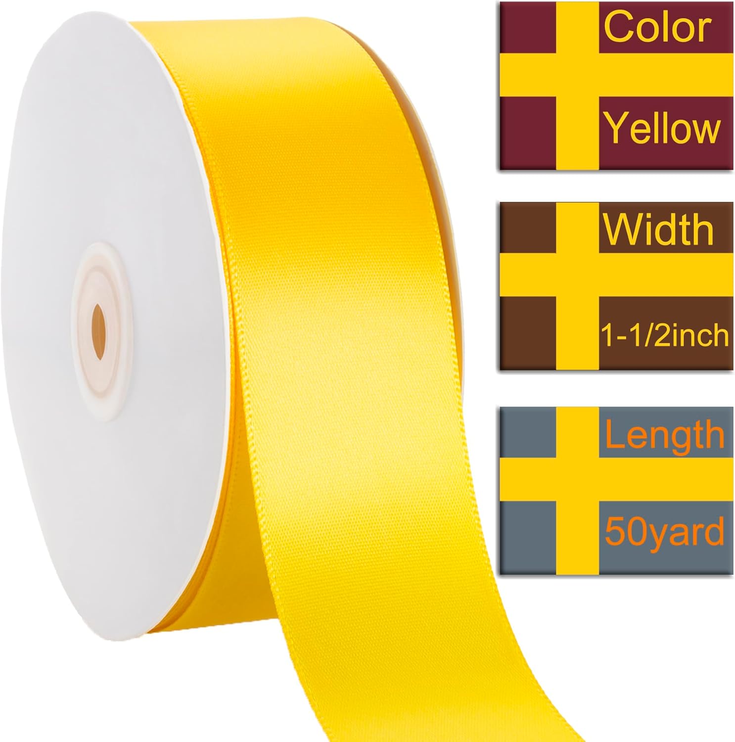 1-1/2 Inch Yellow Ribbon, 50 Yards Craft Polyester Satin Ribbon Perfect for Gift Wrapping, Handmade Roses, Wedding Party Decorations and DIY Crafts