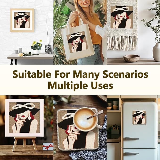 - Elegant Lady Pattern: Bring relaxing nature elements decor to your home with this lady wearing hat pattern punch needle starter kit
