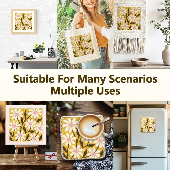- Daisy Flowers Pattern: Bring relaxing nature elements decor to your home with this white daisy flowers pattern punch needle starter kit