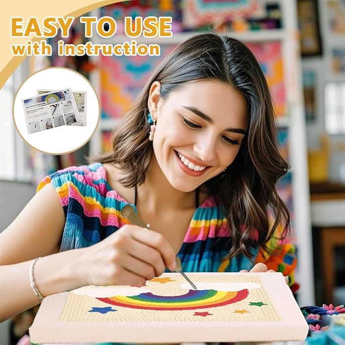 - Rainbow Pattern: Bring relaxing nature elements decor to your home with this rainbow pattern punch needle starter kit
