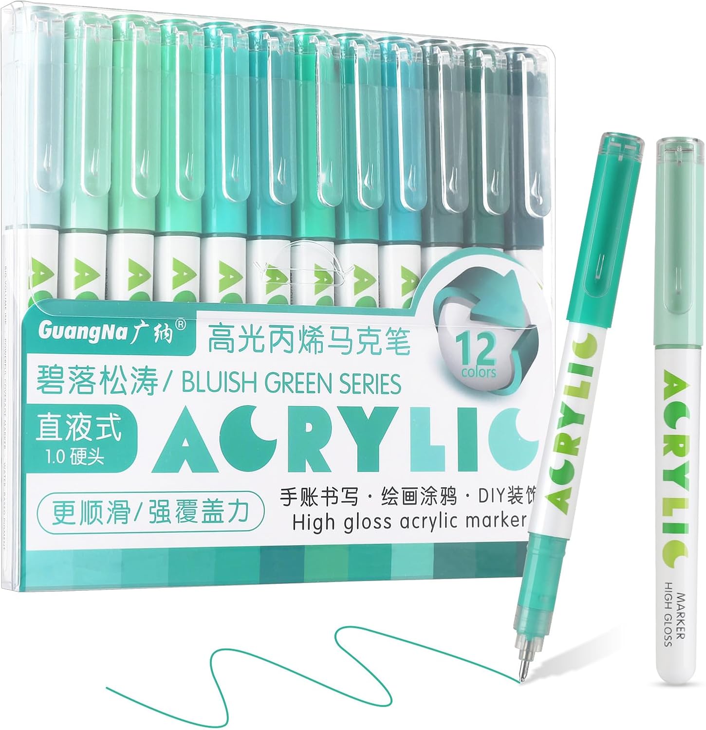 kander Direct Liquid Highlighter Acrylic Marker, 12 Colors Gel Pens with Bullet Tip, Strong Coverage, Large Ink Capacity, Multi-Purpose Paint Pens for Rock Painting, Crafts, DIY, Art Supplies
