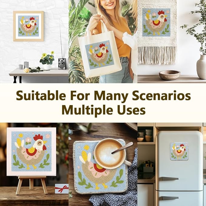 - Chickens Pattern: Bring relaxing nature elements decor to your home with this cute chickens pattern punch needle starter kit