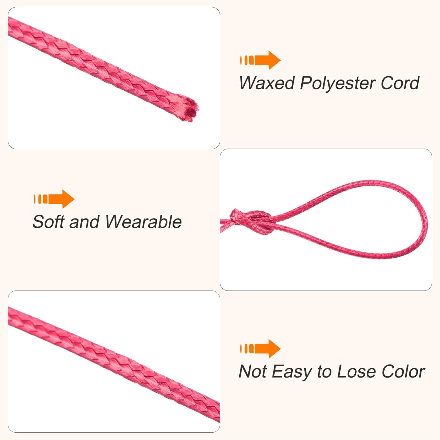 MECCANIXITY Waxed Cord 2mm Waxed Polyester Cord 11 Yard Wax String for Bracelet Making,Necklaces, Beading,Jewelry Making and DIY Crafts(Rose Red)