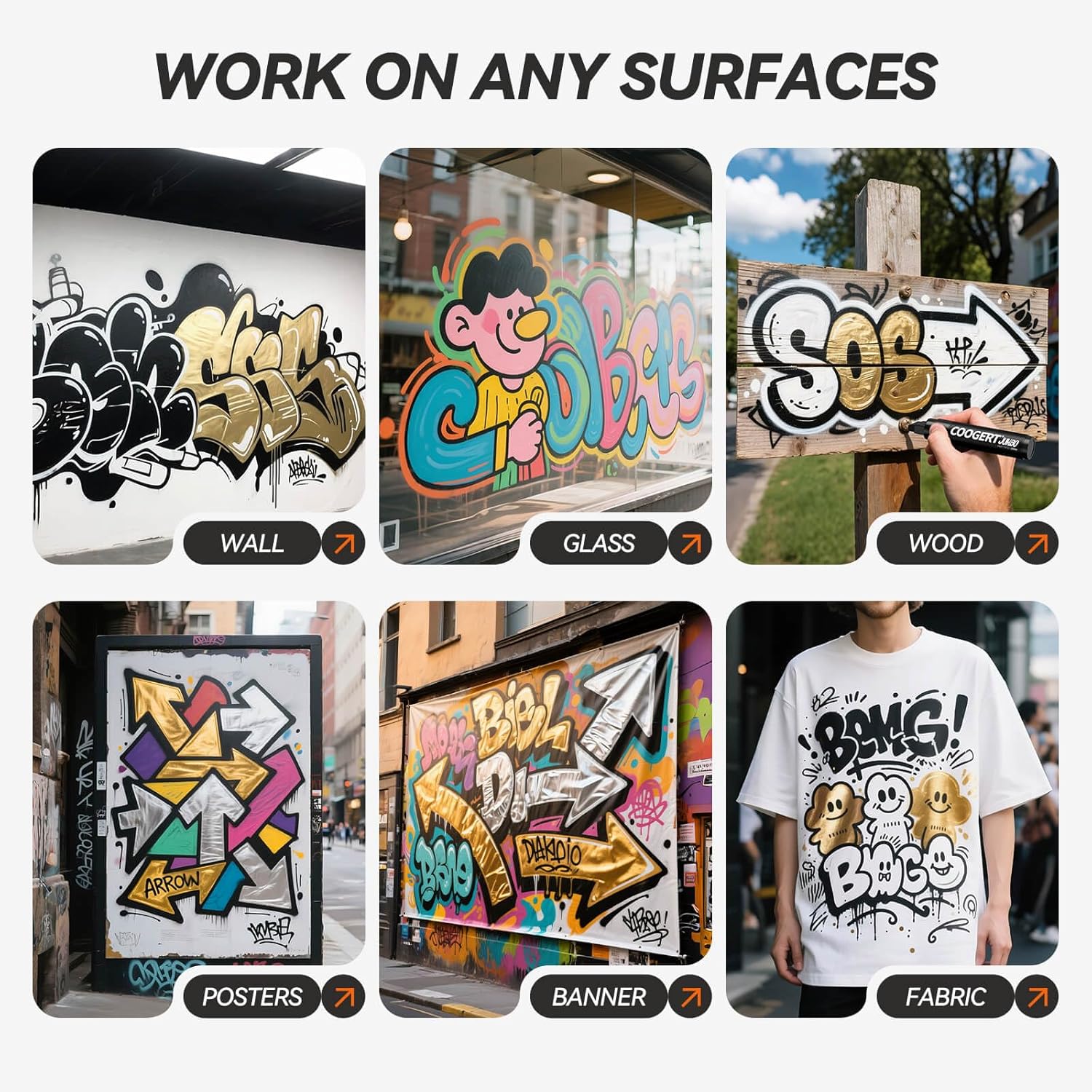 - ACRYLIC GRAFFITI MARKERS – Coogert Jumbo Poster Markers is made with the highest-quality non-toxic, acid-free,no odor, no-leakage water-based acrylic ink that is waterproof, quick dry, long-lasting, and has a smooth ink flow