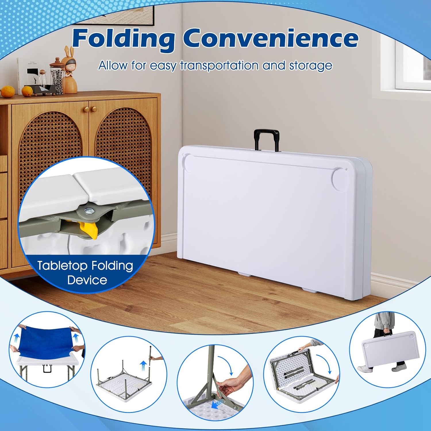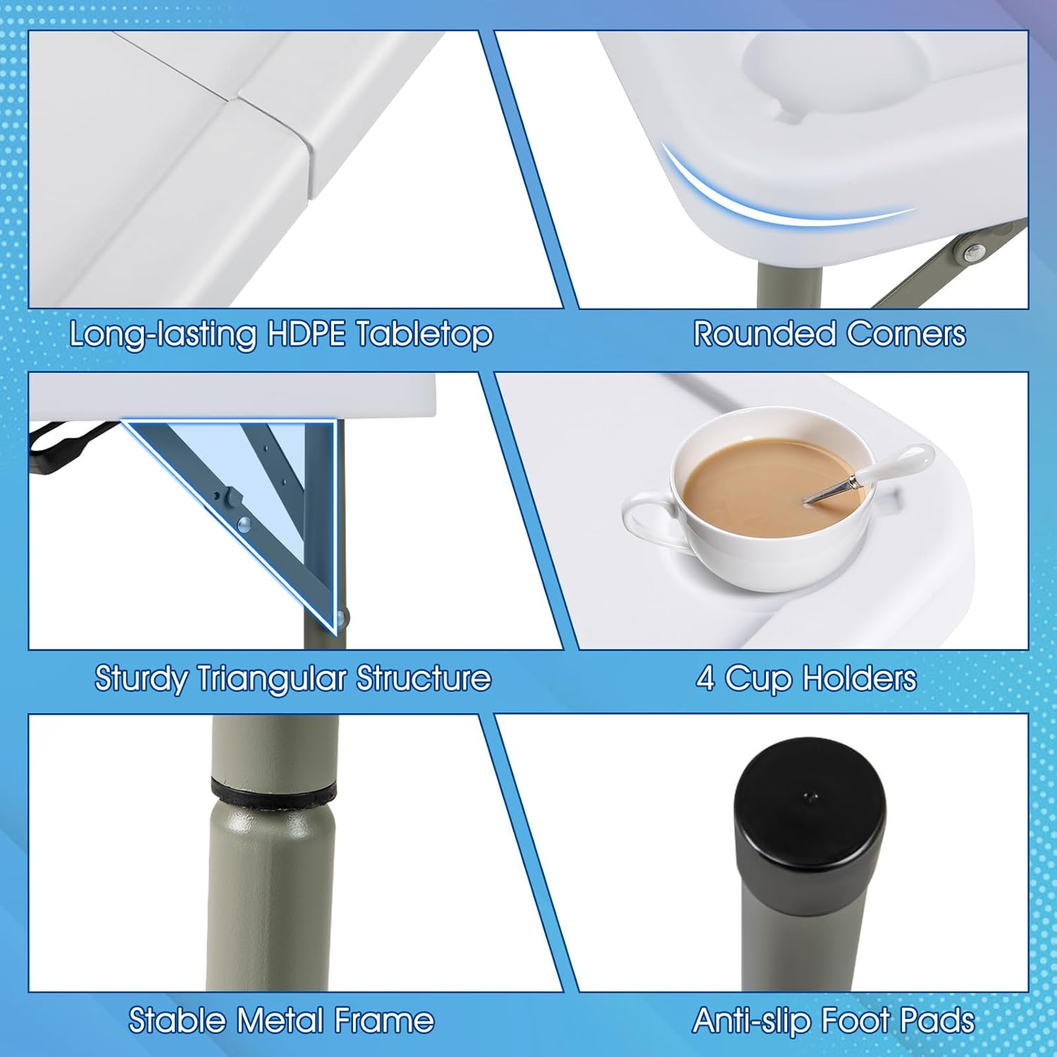 - Sturdy Construction: Built from HDPE, this card table is not only strong and impact-resistant, but also lightweight, waterproof, and easy to clean. Supported by a sturdy metal frame with a reinforced triangular structure, it can hold up to 180 lbs. Anti-slip foot pads ensure it stays steady on any surface.