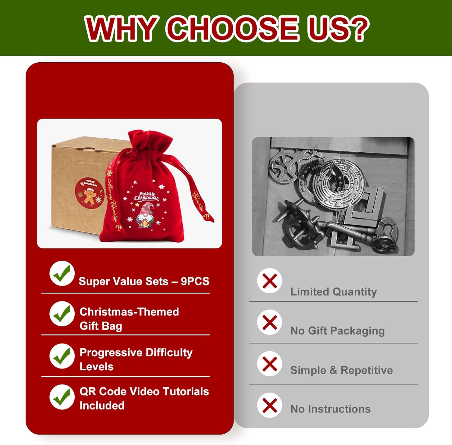- đăChristmas-themed packagingăThis festive bag works as both a storage pouch and a charming stocking stuffer, making it a thoughtful Christmas present for iq puzzles and brain teaser fans