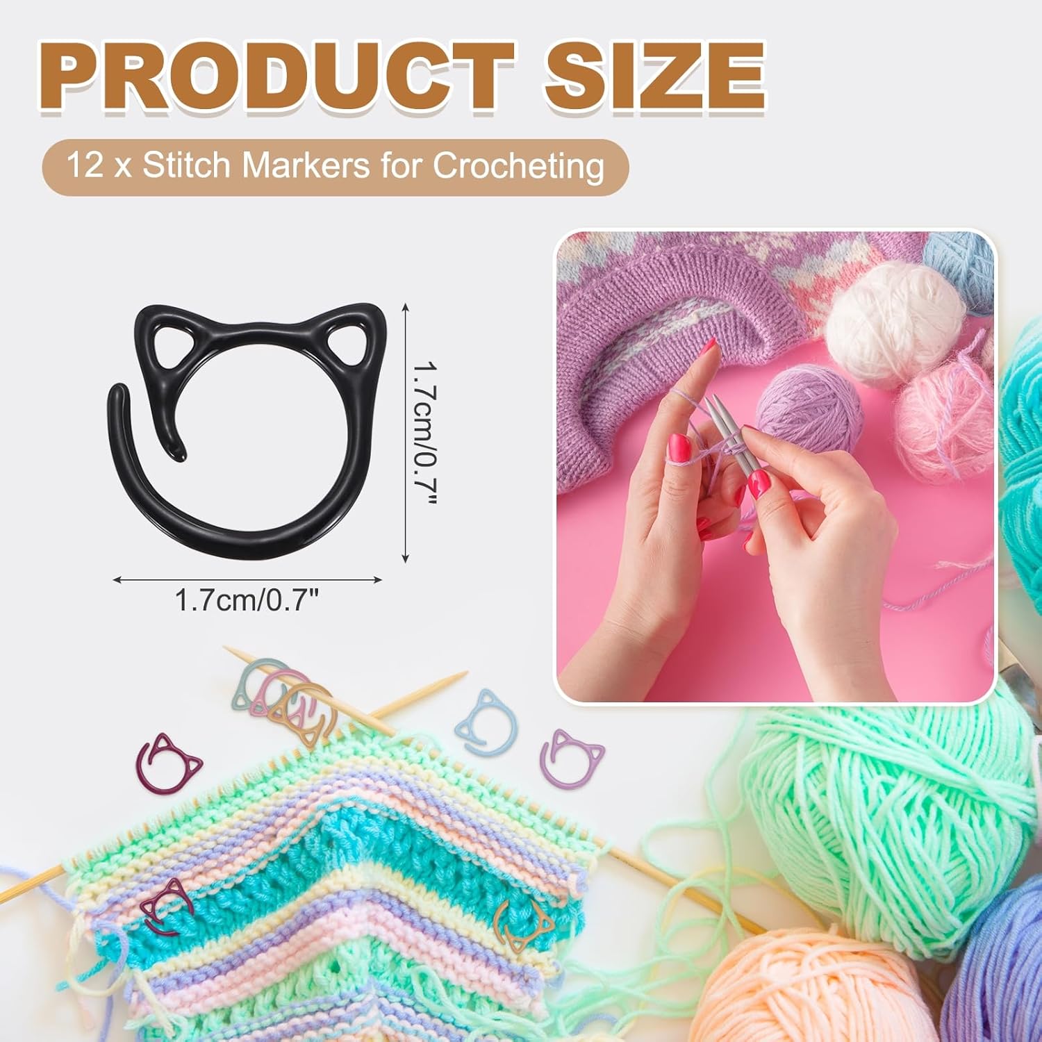- Advantage: Lightweight Metal Construction: Crafted from smooth-polished metal that eliminates yarn snagging and withstands long-term use without deformation. Secure Tangle-Free Functionality: The split-ring design grips yarn firmly without slipping, yet releases smoothly for effortless repositioning during intricate projects. Instant Stitch Visibility: Cute cat shapes accelerate pattern tracking with clear visual cues.