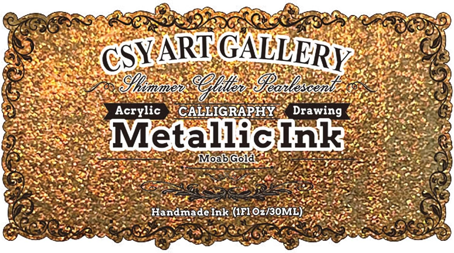 CSY Art Gallery Fast Drying Acrylic Metallic Finish Ink-Liquid Gold Leaf Paint-Calligraphy Inks for Metal, Wood, Plastic, Canvas (Moab Gold)