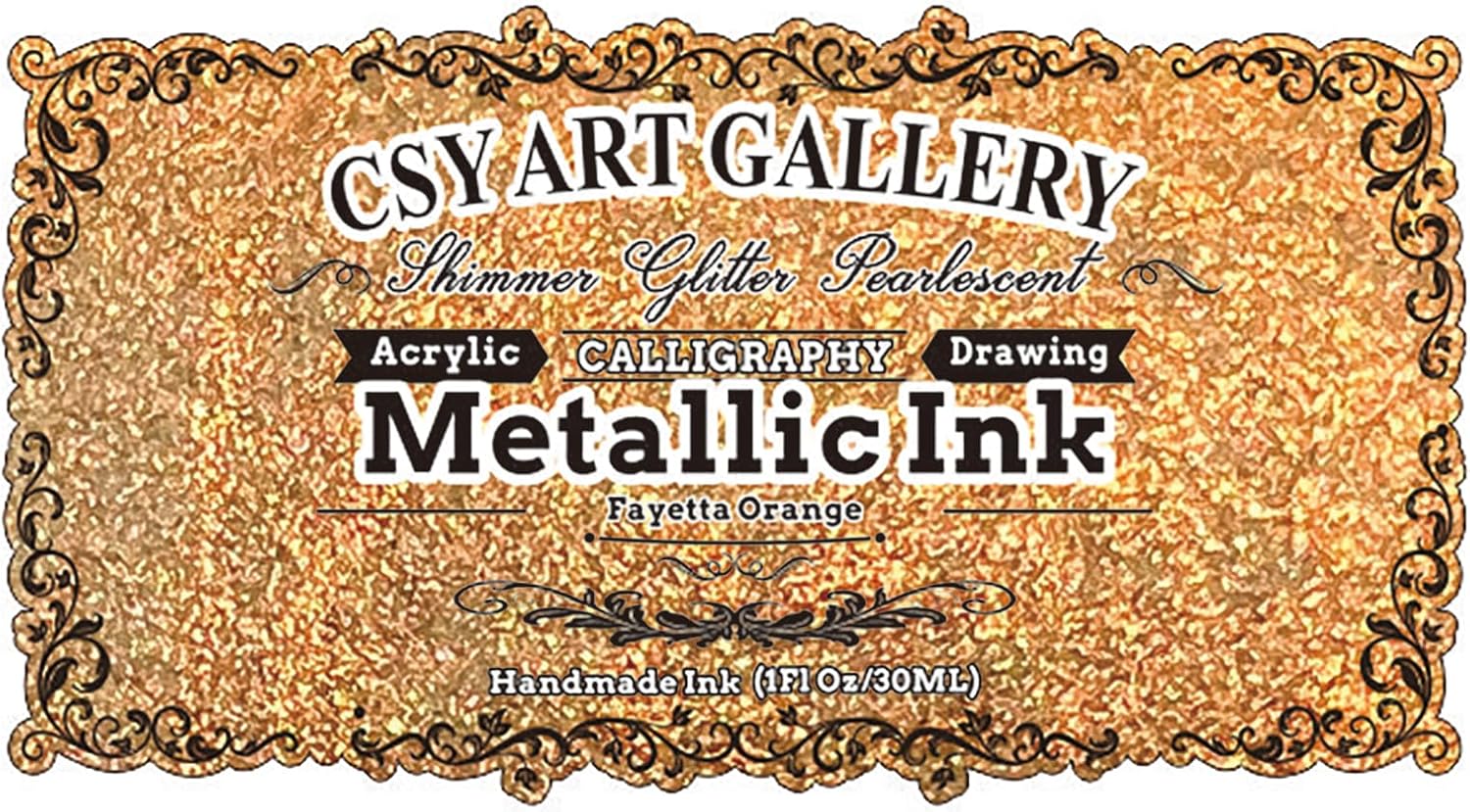 CSY art gallery Metallic Acrylic Paint Ink-Craft Paint-Calligraphy Inks,Glitter-Pearlescent -Gold Drawing Ink Liquid Gold Leaf Paints with Dropper, 1oz - 29.5 ml (Fayetta Orange)