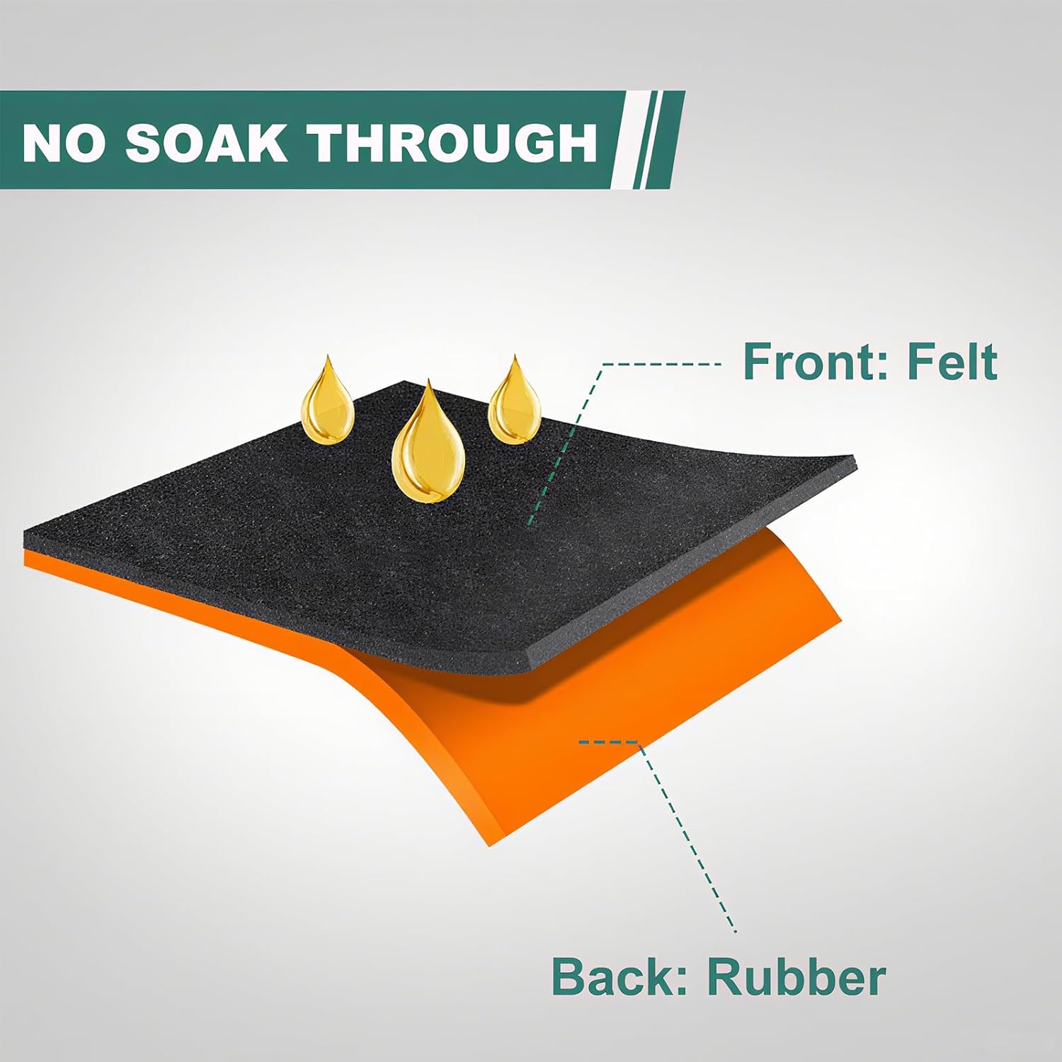 - Fast-Absorbing & Long-Lasting Oil Mat: The top layer is made of thick polyester fabric with strong oil absorption, capable of containing any oil stains or liquid spills. It is also easy to clean—simply scrub with soap, rinse with a hose, and air-dry. To maintain its durability, please avoid using bleach.