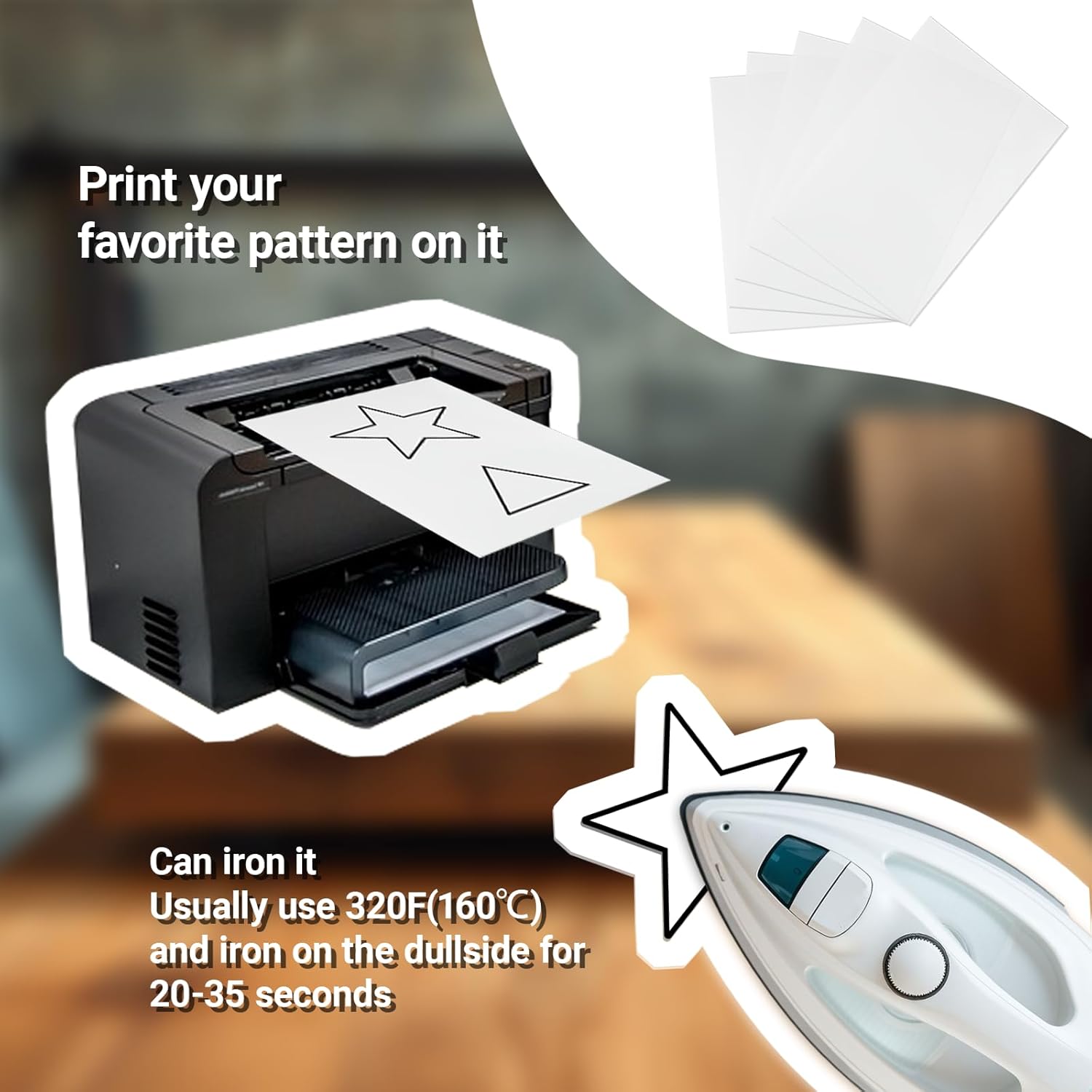 - Easy Printing for Perfect Templates: Quickly transfer your digital designs by printing on the matte side of these sheets using an inkjet printer. For your safety and the best results, please avoid laser printers, as their high heat can damage the paper's unique coating. Once printed, the glossy side irones onto fabric for a secure hold.