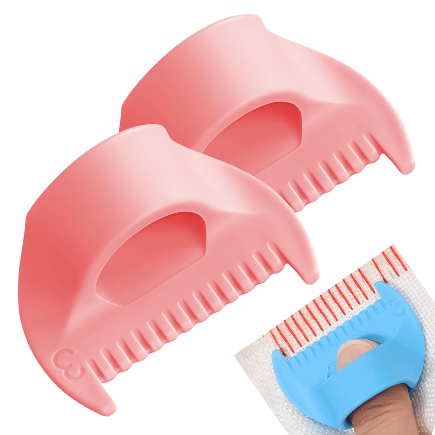 2 PCS 3mm Edge Lock Seam Guide, Mini Sewing Finger Ruler for Hand Sewing, DIY Sewing Kit Tool, Sewing Needle Gauge Measuring Guide, Pink