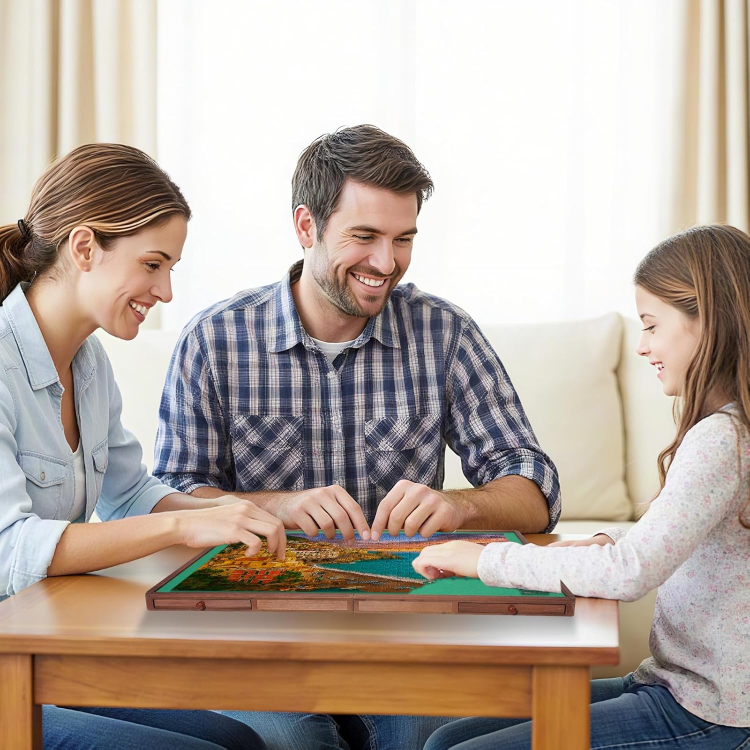 - 【Premium Sturdy Wood】 Our puzzle board is made from high quality hardwood and can hold up to 1,500 pieces.Each section has been finely sanded, exquisite craftsmanship, smooth and non-slip surface.The entire puzzle board is free of sharp edges and small parts.This puzzle board is designed to meet the needs of puzzle lovers and enhance the overall experience of puzzle-solving with friends and family.