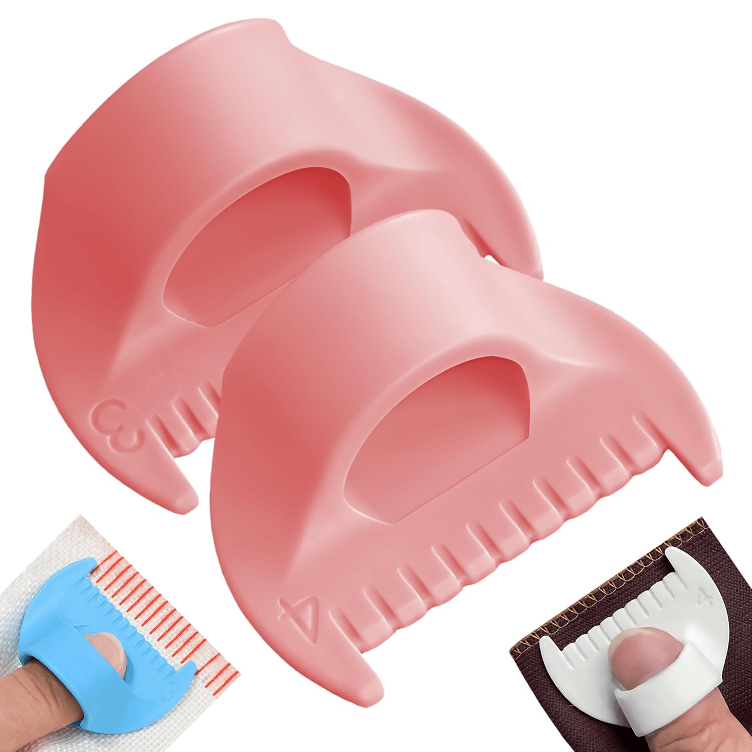 2 PCS Edge Lock Seam Guide, Mini Sewing Finger Ruler for Hand Sewing, DIY Sewing Kit Tool, Sewing Needle Gauge Measuring Guide Pink, 3mm+4mm