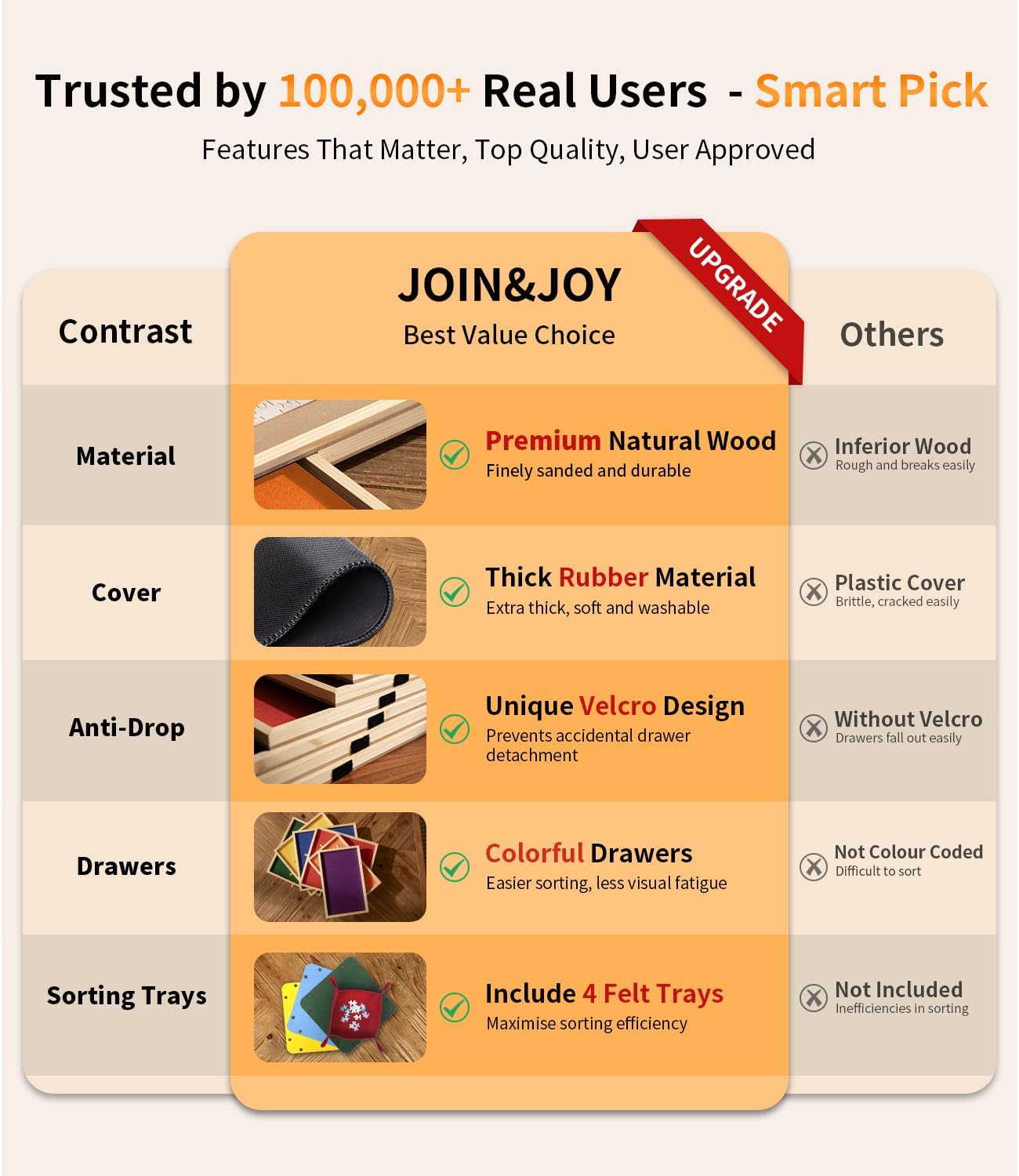 - EXCELLENT ORGANISATION & STORAGE FUNCTION: With 6 colorful sliding drawers and 4 additional colorful felt sorting trays, our puzzle board offers a more practical solution than others with non-colored drawers. This clever design and increased storage space allows you to efficiently sort and organise your puzzles by color or shape, avoiding confusion during assembly, keeping everything in order and completing your masterpieces more efficiently.