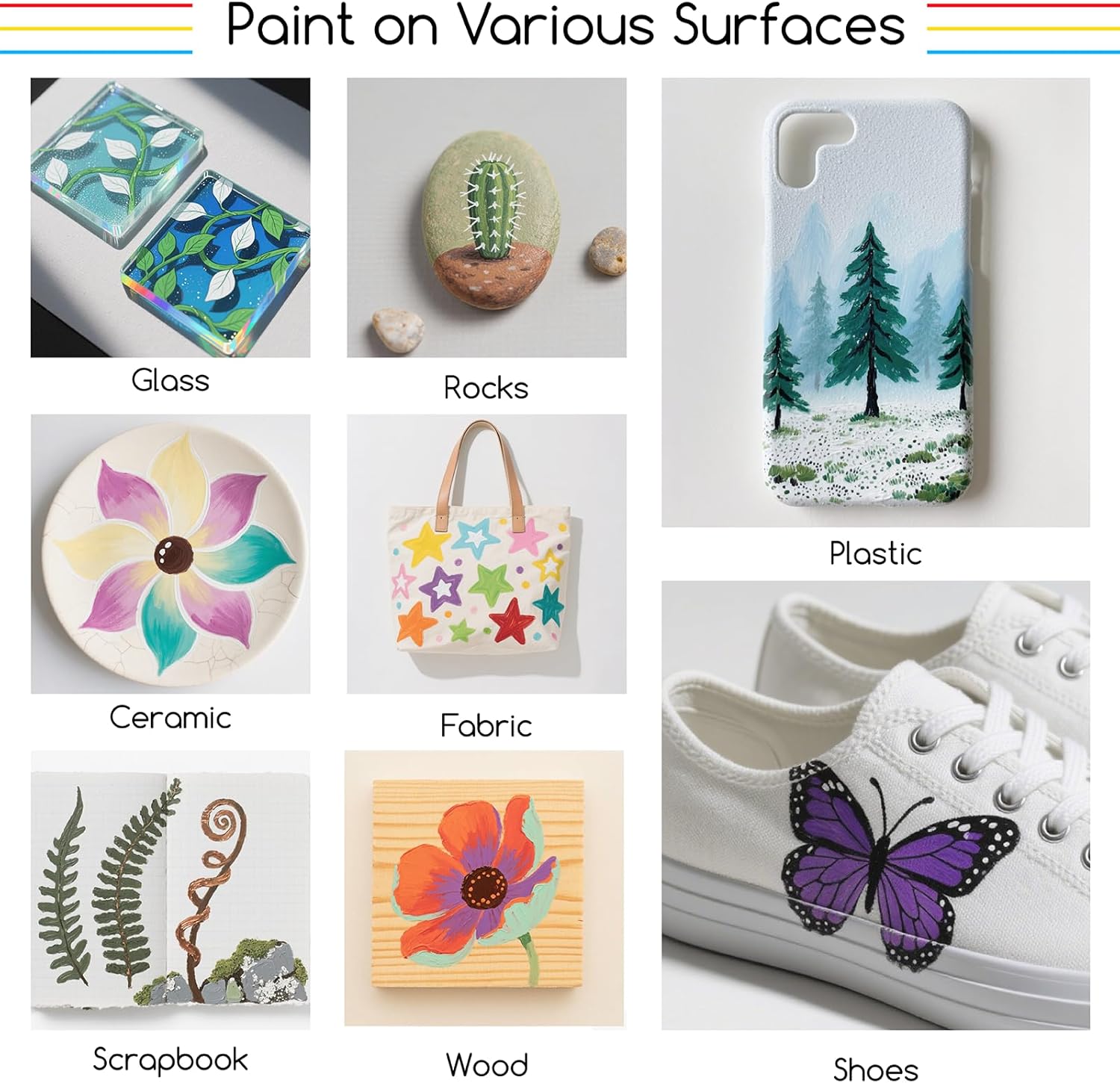 - Quick-Drying & Waterproof: Quick-dry acrylic ink no-bleeding and supports smooth layering, paint markers making your creative process faster and more efficient. Once dry, the colors stay vibrant, waterproof, and resistant to smudging or rubbing, keeping your artwork fresh over time. Perfect for decorating mugs, crafting DIY gifts, or painting on rocks, tβs a must-have in the craft supplies toolkit of kids, students, teachers, and friends