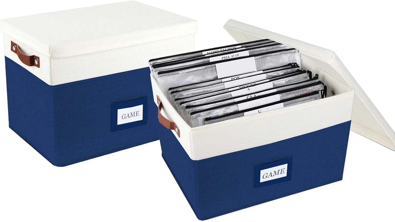 Board Game Storage with 12pcs Zipper Bags and Writable Stickers, Board Game Organizers Storage with Lid for Office Supplies, Puzzles, Video Game, Craft Product (2-Pack Large)