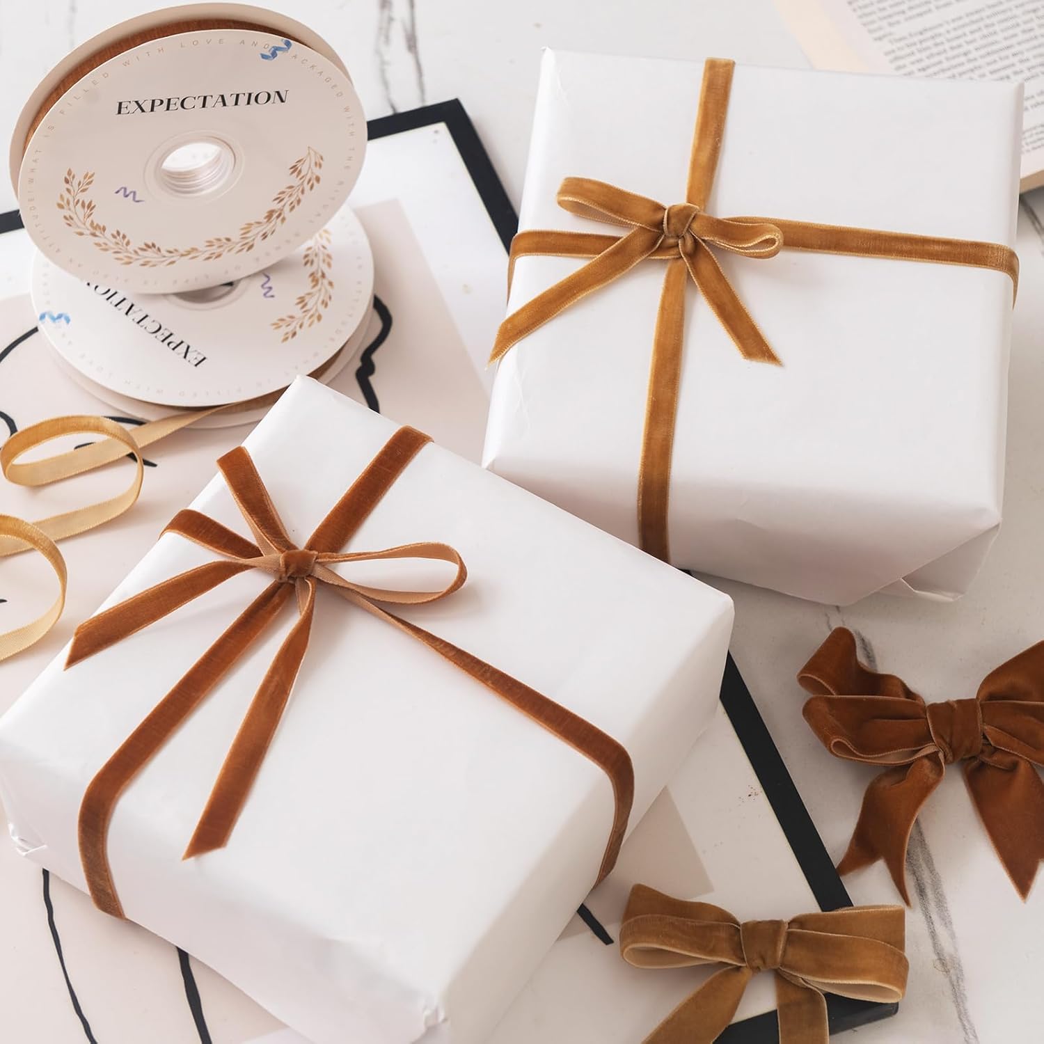 Brown Velvet Ribbon 3/8'' 2 Rolls Total 30 Yards, Use for Gift Wrapping, Christmas Tree, Wreath Decoration, DIY Crafts (Khaki, Brown)