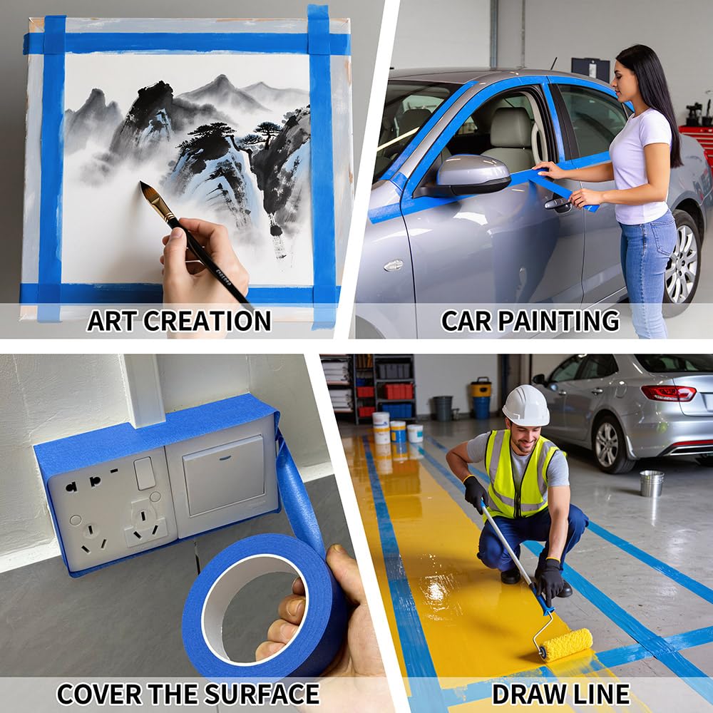 - 【UV & Weather Resistant】 Engineered with premium materials, this blue masking tape resists tearing, lifting, and UV damage. Unlike standard painter tape, our formula withstands sunlight and moisture, making it ideal for both indoor and outdoor painting projects. The blue tape painters trust for lasting adhesion in any condition.