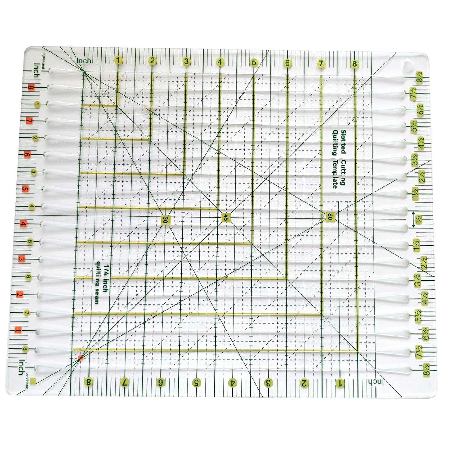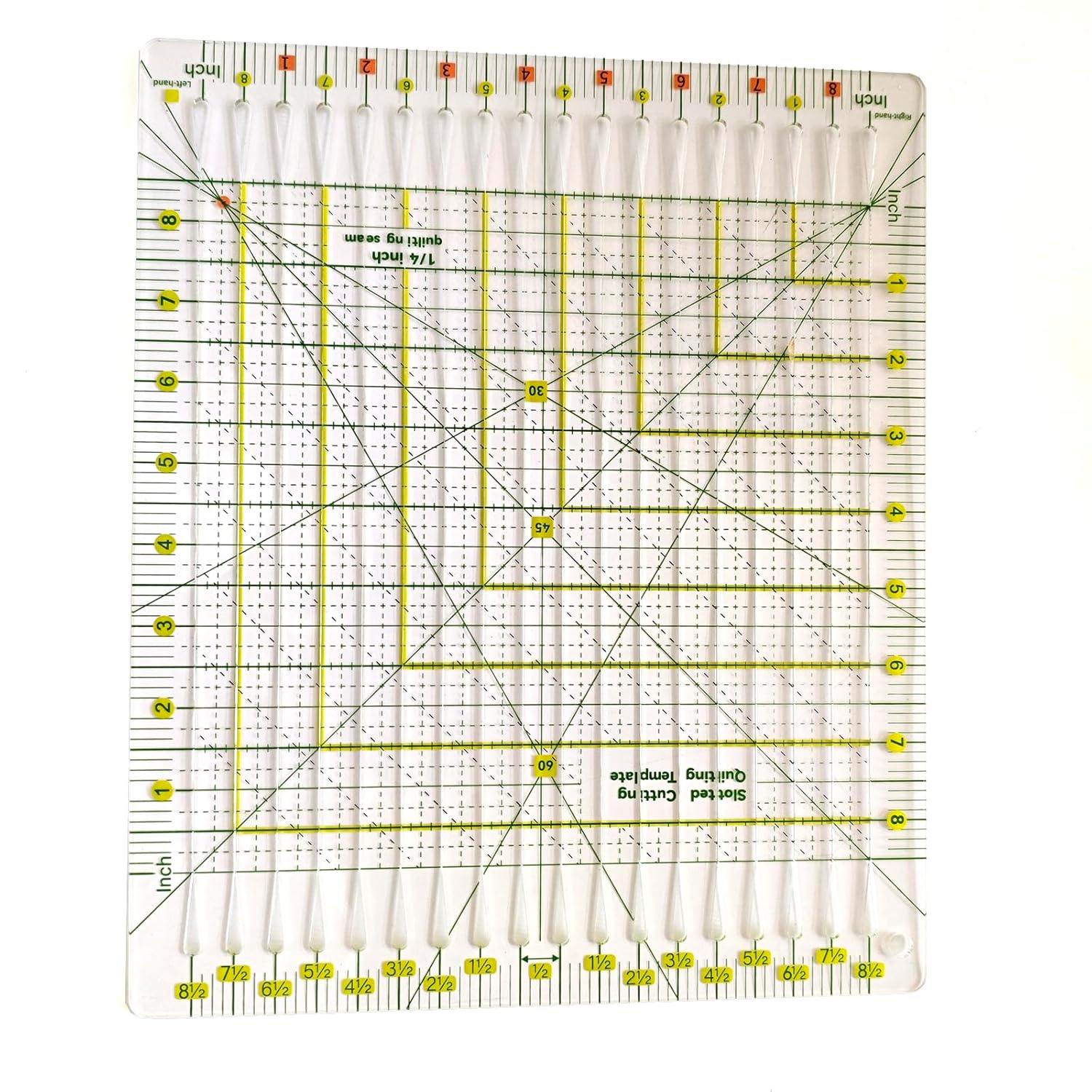 8.5"x8.5" Acrylic Quilting Ruler Durable Patchwork Ruler, Slotted Rulers for Quilting Fabric Cutting Crafts 1/4 Inch Quilting Seam