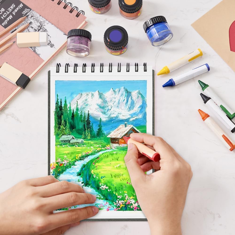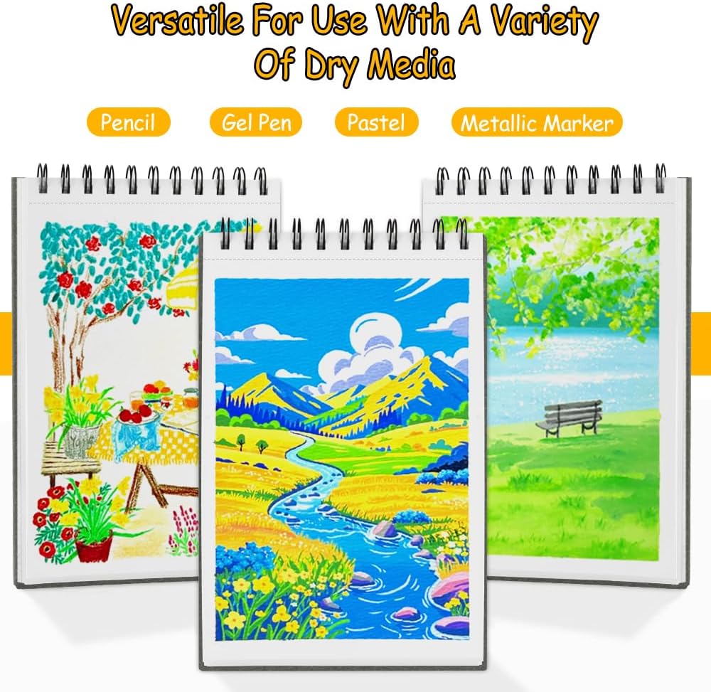 - Premium Paper Quality: 8.3x5.8in mixed media sketchbook, 92lbs/150gsm acid-free papers, 60sheets in each blank notebook. Fine texture for drawing, sketching, it is suitable for various dry media such as pencils, charcoal pencils, gel pens, colored pencils, pastels, etc. It is an ideal choice for artists or beginners