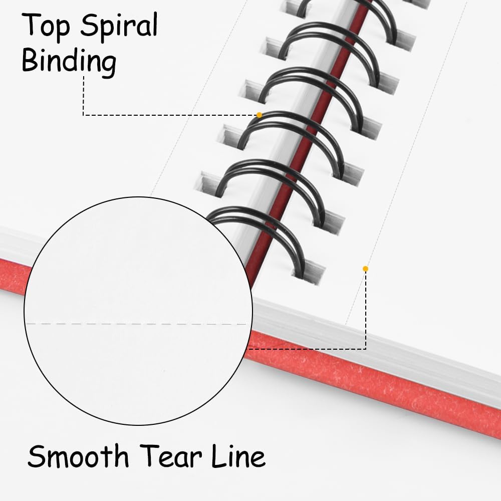 8.3x5.8 Sketch Book, Top Spiral Bound Sketch Pad, 60sheets 92lb/150gsm Bright White Paper, Acid-Free Mixed Media Paper for Painting, Dawing & Art Supplies. B-Red