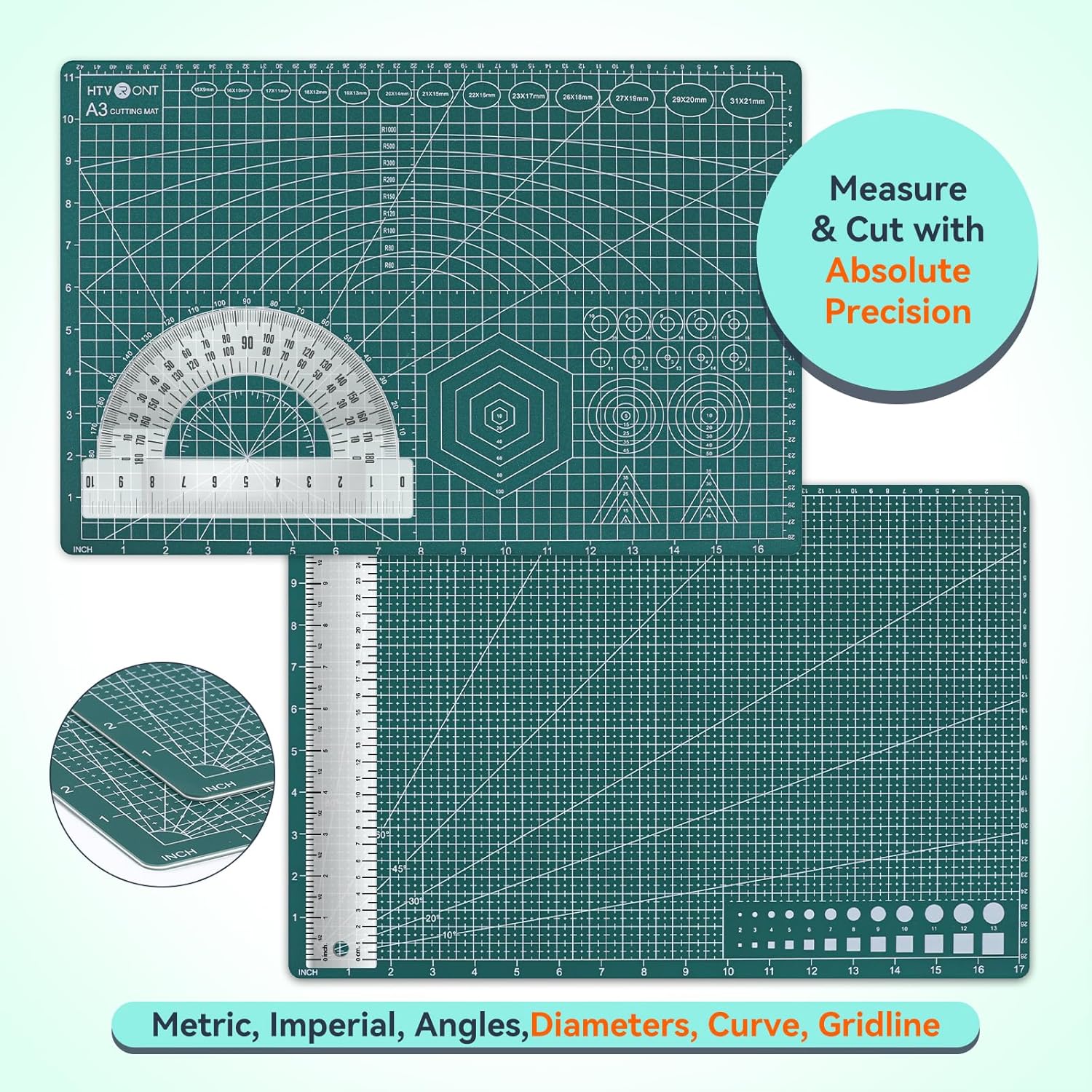 - ENGINEERED FOR ACCURACY & EFFICIENCY: Includes precision markings for Metric, Imperial, Angles, Diameters, Curves, and Gridlines, the cutting mat helps you locate the exact center effortlessly. This guarantees precision in sewing, quilting, scrapbooking, gift wrapping, and beyond
