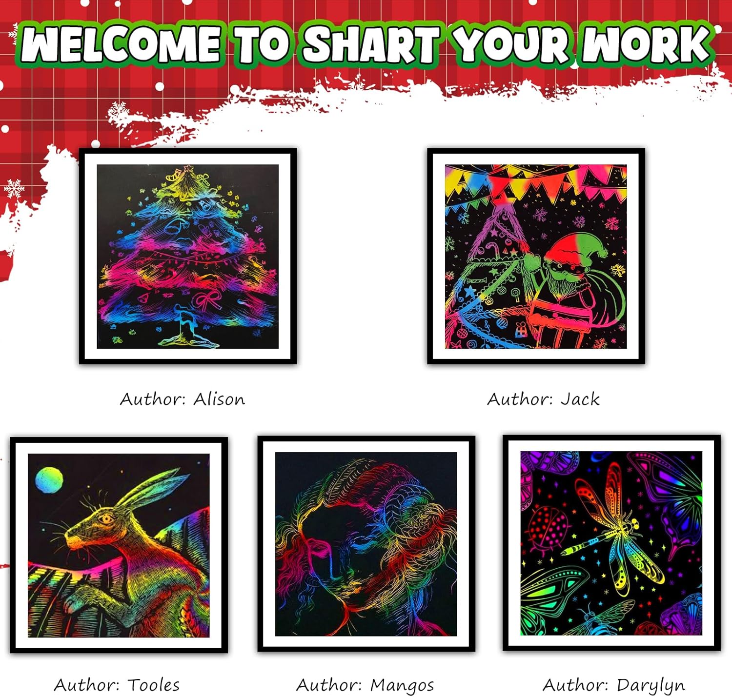 - Scratch Art For Kids: Our magic scratch paper made of premium paper & nature wooden stylus is safe scratch party favors art. Kids can draw amazing creative scratch note art sheet artworks safely. Great arts crafts supplies for kids teens adults. Classroom must haves art supplies for students from teacher