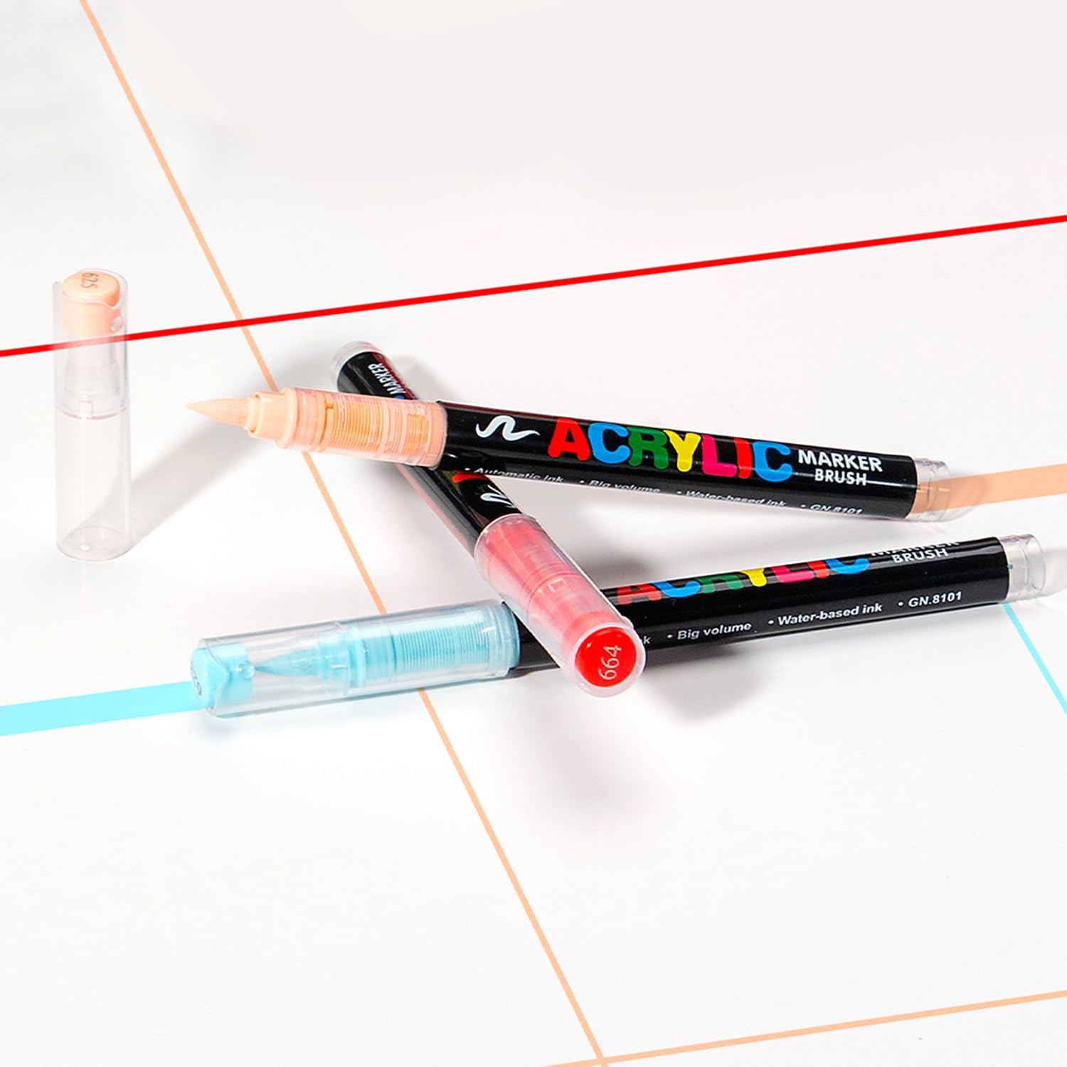 Acrylic Paint Markers Pens, 48 Vivid Colors Acrylic Markers Set,Direct Liquid Type, Stackable Color, Odorless Soft Head,Markers for School,Tooli Art ,Fabric & Creative Crafts (48)