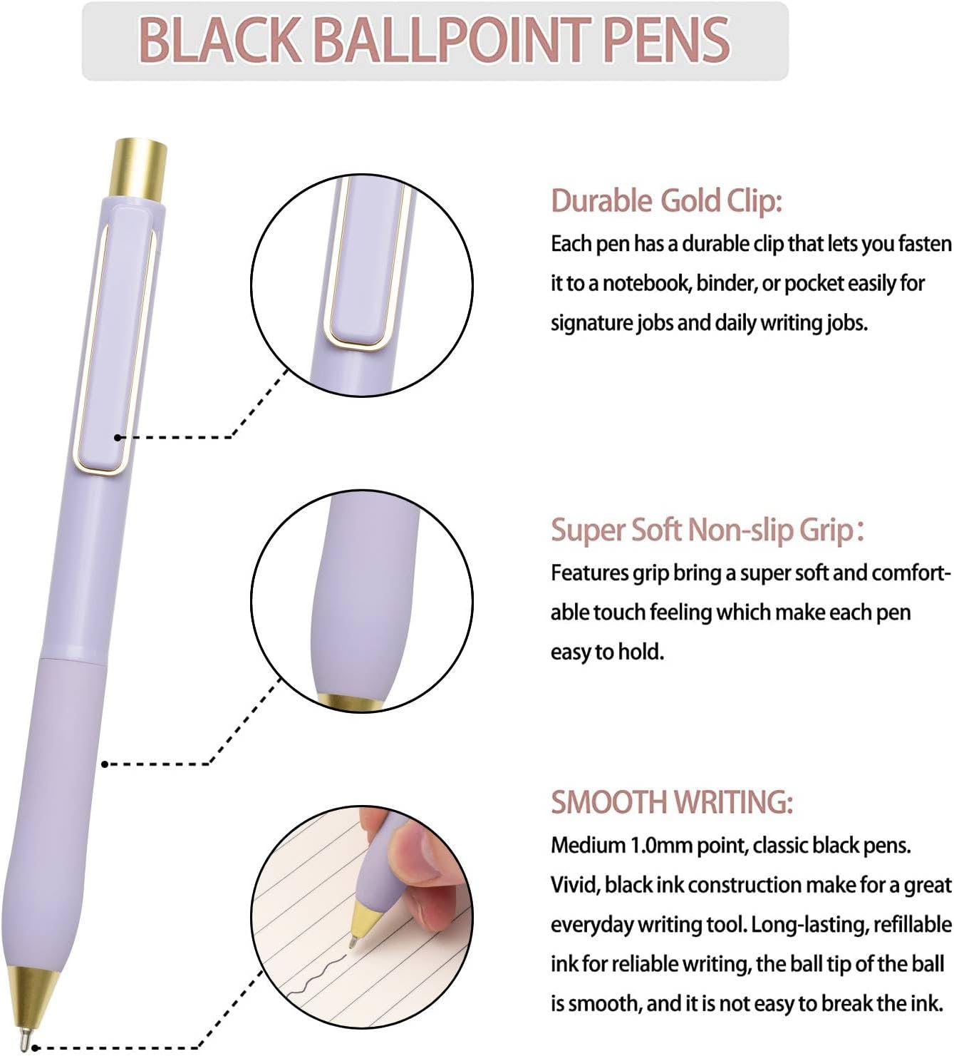 - Super Soft Non-slip Grip: Features grip bring a super soft and comfortable touch feeling which make each ballpoint pen easy to hold