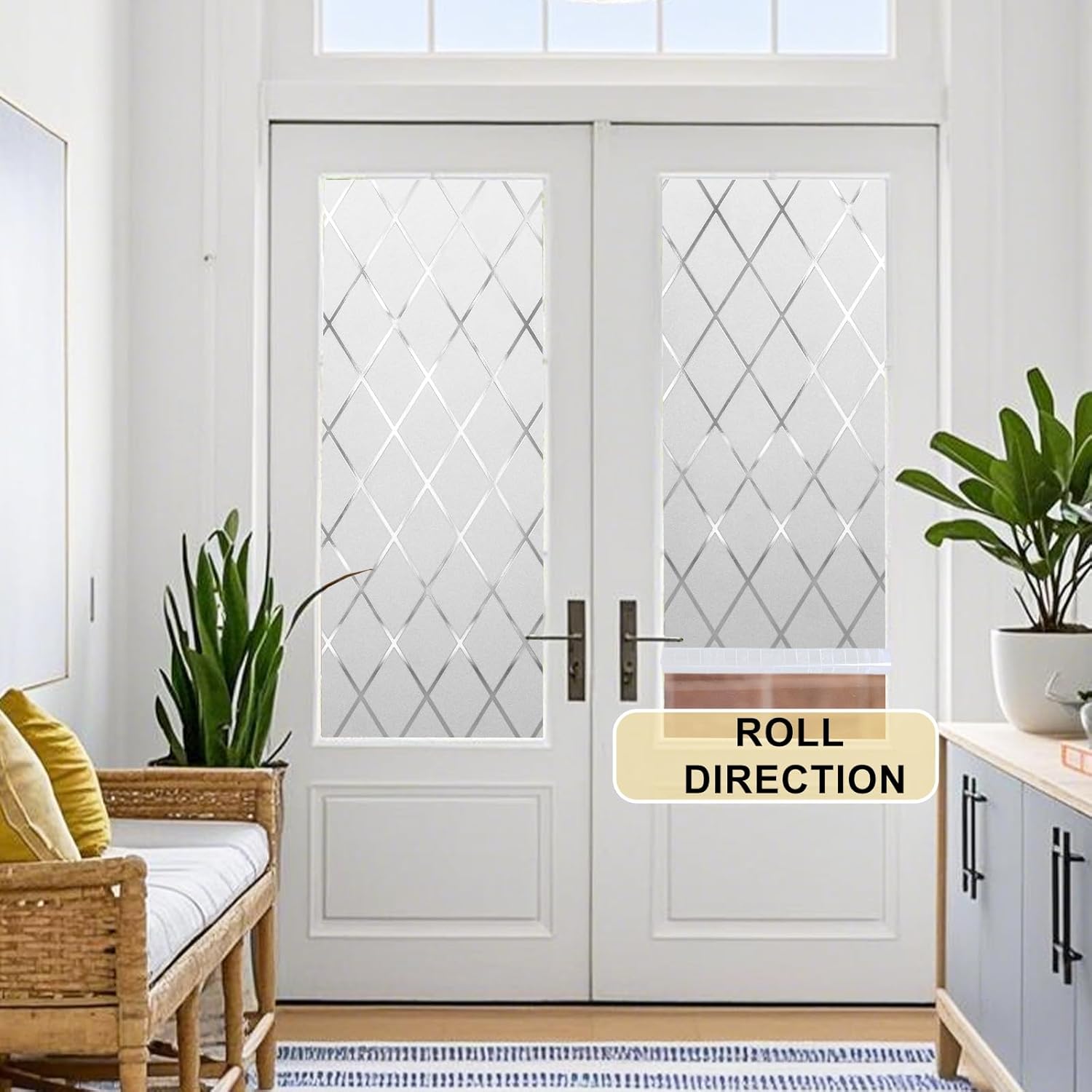 Window Privacy Film Decorative for Front Door, Bathroom Static Cling Stained Glass Sticker Opaque Heat Control UV Blocking Non-Adhesive for Home,Grid 23.6 x 78.7 inches