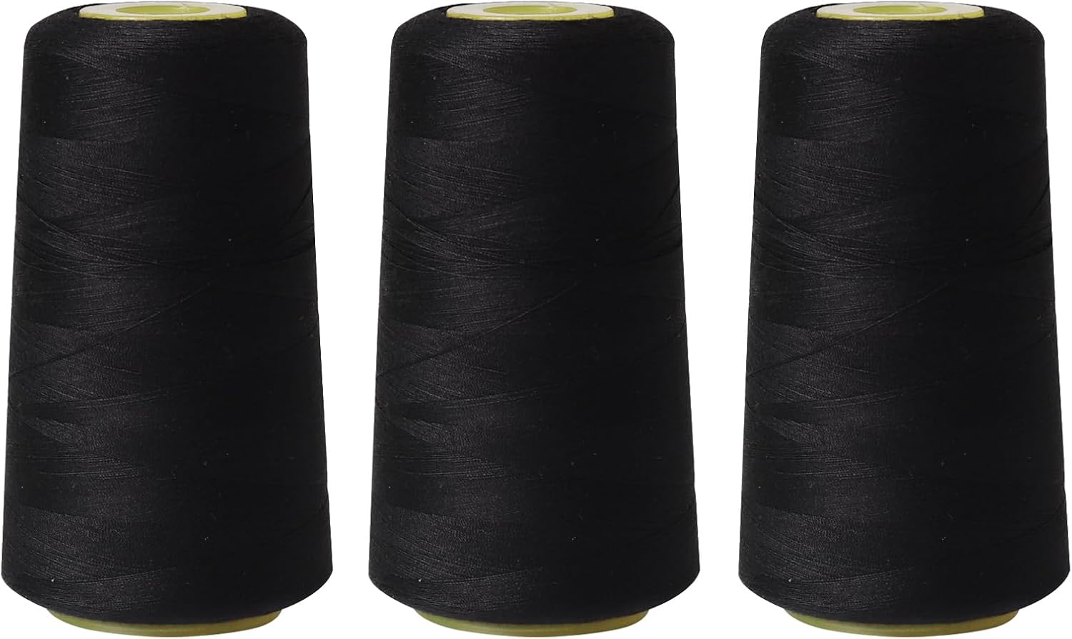 Sewing Thread Cone Set, 3 Pack Serger Thread, 3000 Yards Each, All Purpose Thread for Sewing, Quilting, Machines, Overlock, Merrow & Hand Embroidery (Black*3)
