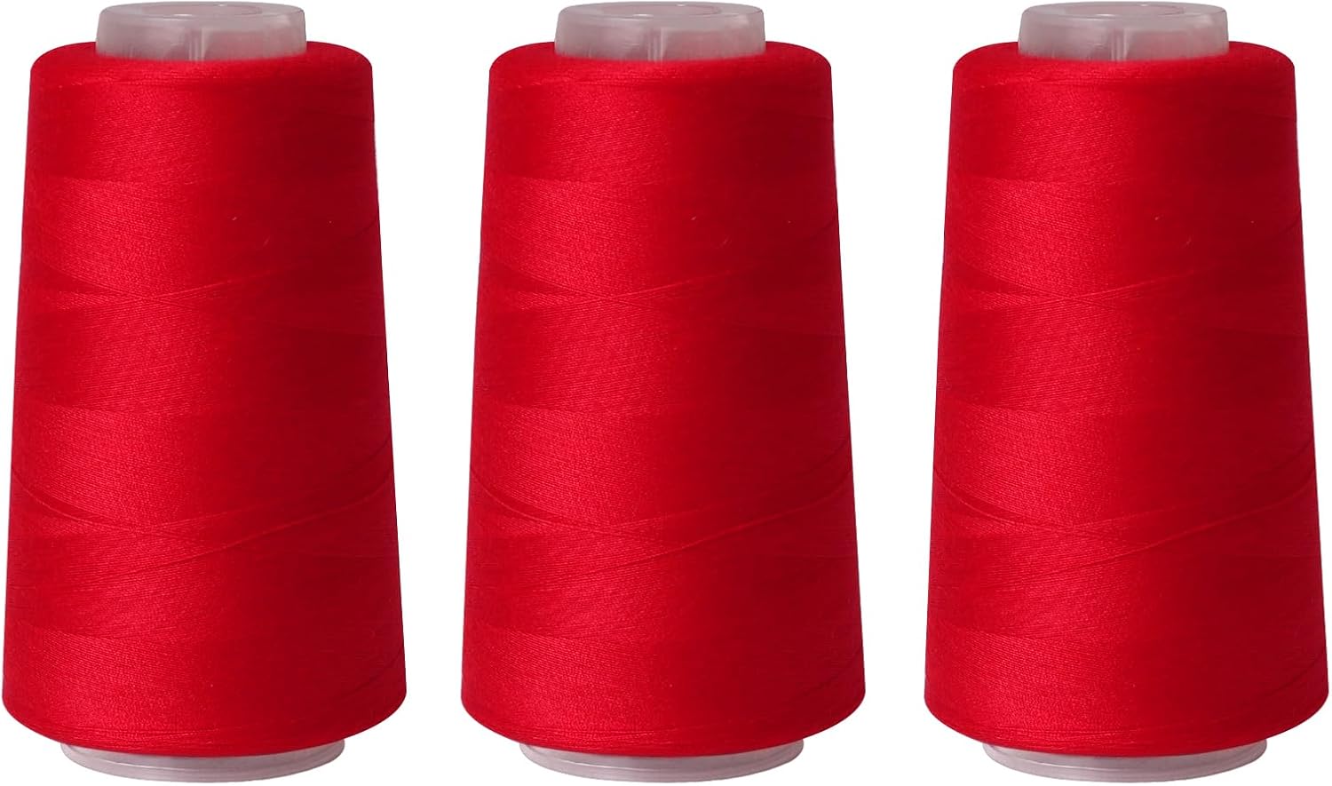 Sewing Thread Cone Set, 3 Pack Serger Thread, 3000 Yards Each, All Purpose Thread for Sewing, Quilting, Machines, Overlock, Merrow & Hand Embroidery (Red*3)