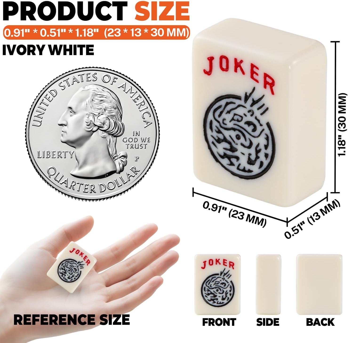 - Full Set of Tiles: Comes complete with 166 tiles, including 36 Dots, 36 Bams, 36 Cracks, 12 Dragons, 16 Winds, 16 Flowers, 10 Jokers, and 4 Blank Spares.