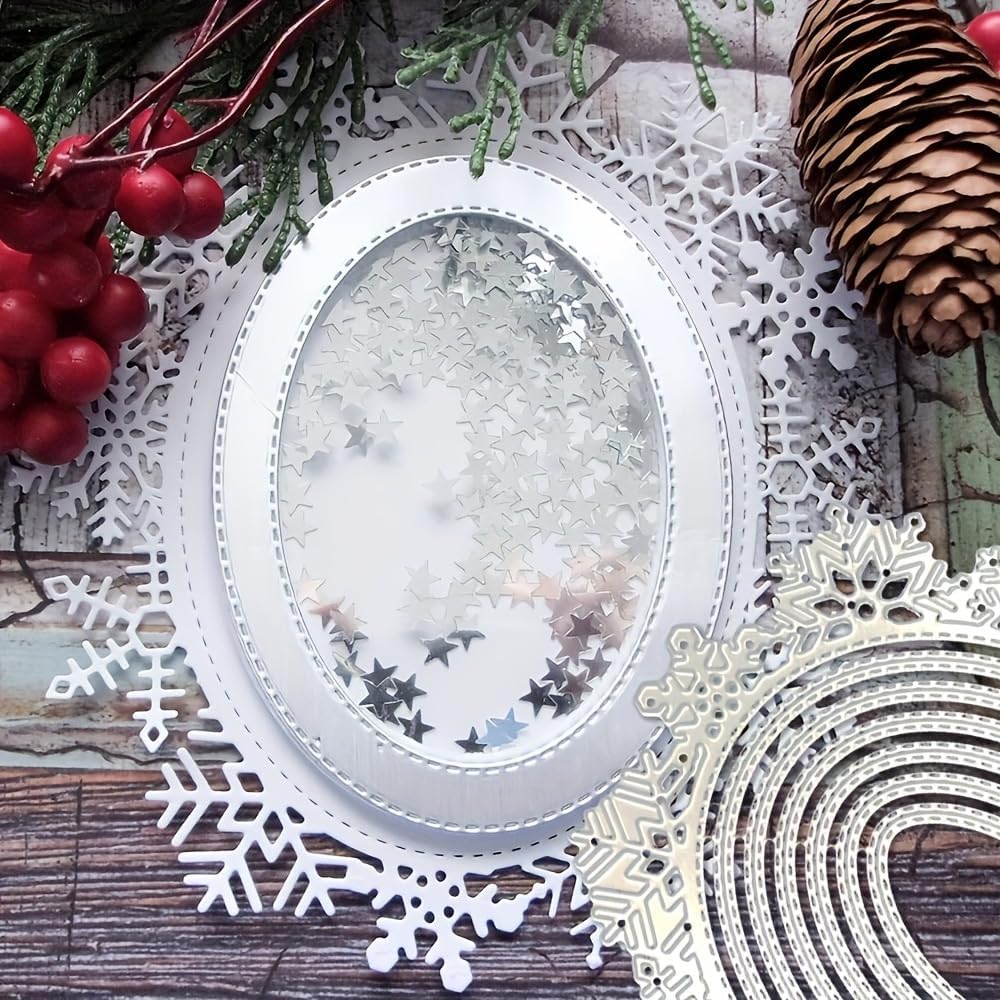 Lapoo Geometric Cutting Die for Scrapbooking - Durable, Cut Stencils for DIY Scrapbook Photo Album Decorative Paper Card, Card Making Supplies (Snowflake Round Frame 5.9 x 5.4 in)