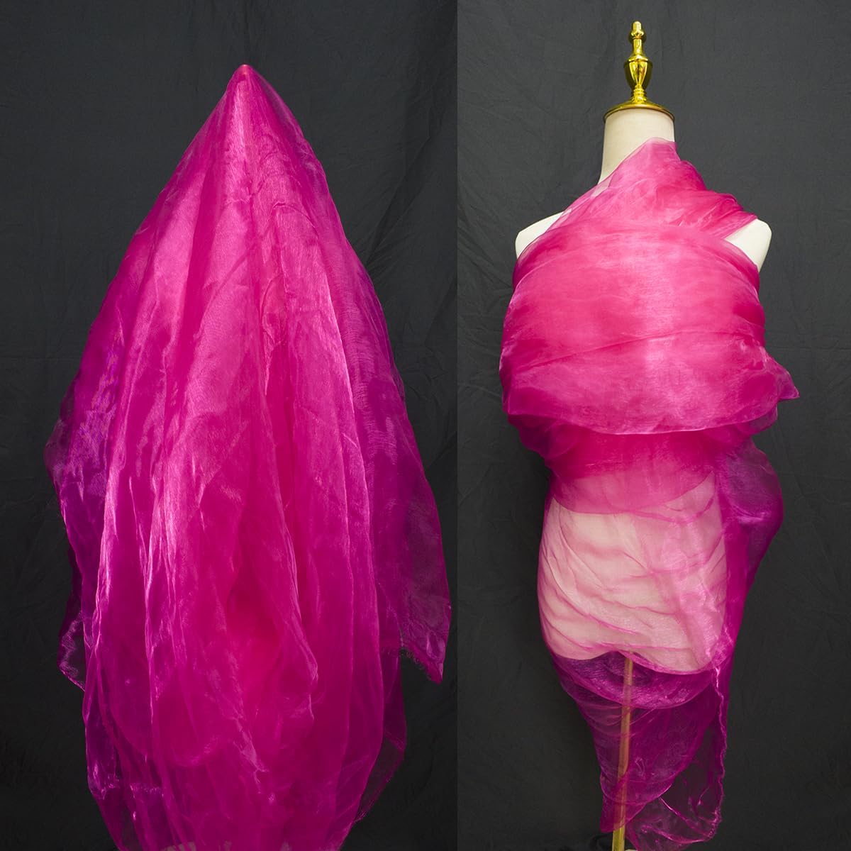 Two-Tone Iridescent Holographic Organza Fabric - 11 Yards by The Yard | Lightweight Sheer Tulle | for Wedding Dresses, Party Decor, DIY Crafts, Shiny Backdrops(ICY Shimmery Magenta)