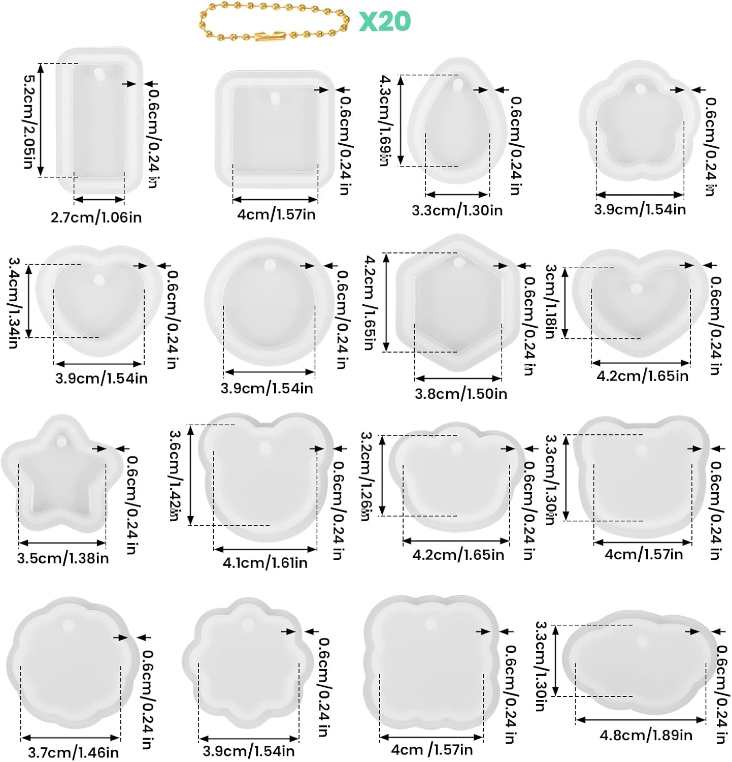 - 【What You'll Get】: This resin molds kit includes 16pcs silicone molds for resin and 20pcs beaded chains, perfect for creating unique resin keychain molds and resin pendant mold projects. All components are neatly packed for easy storage and use.
