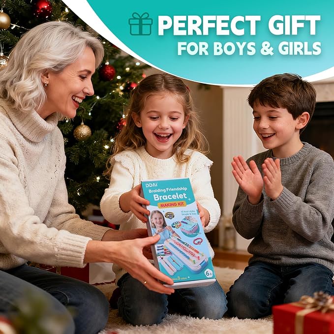 DDAI Bling Bracelet Kit for Girls Age 7-12 – Sparkly Friendship Craft Set with Gems, Threads & Stickers – Birthday Gift for 8 9 10 11 Year Old Girls & Holiday Surprise