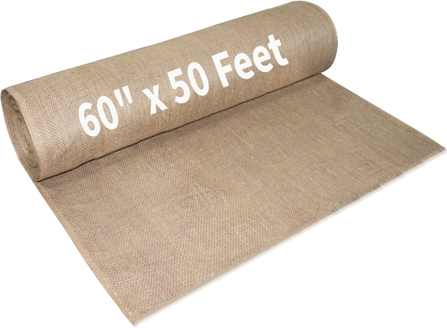 Garden Burlap Roll, 60" x 50 Feet Natural Jute Burlap Fabric Roll for Gardening Raised Bed Liners,Seed Cover,Edging,Weed Barrier,Aisle Runner Plant Cover Tree Protections (60" x 50 Feet)