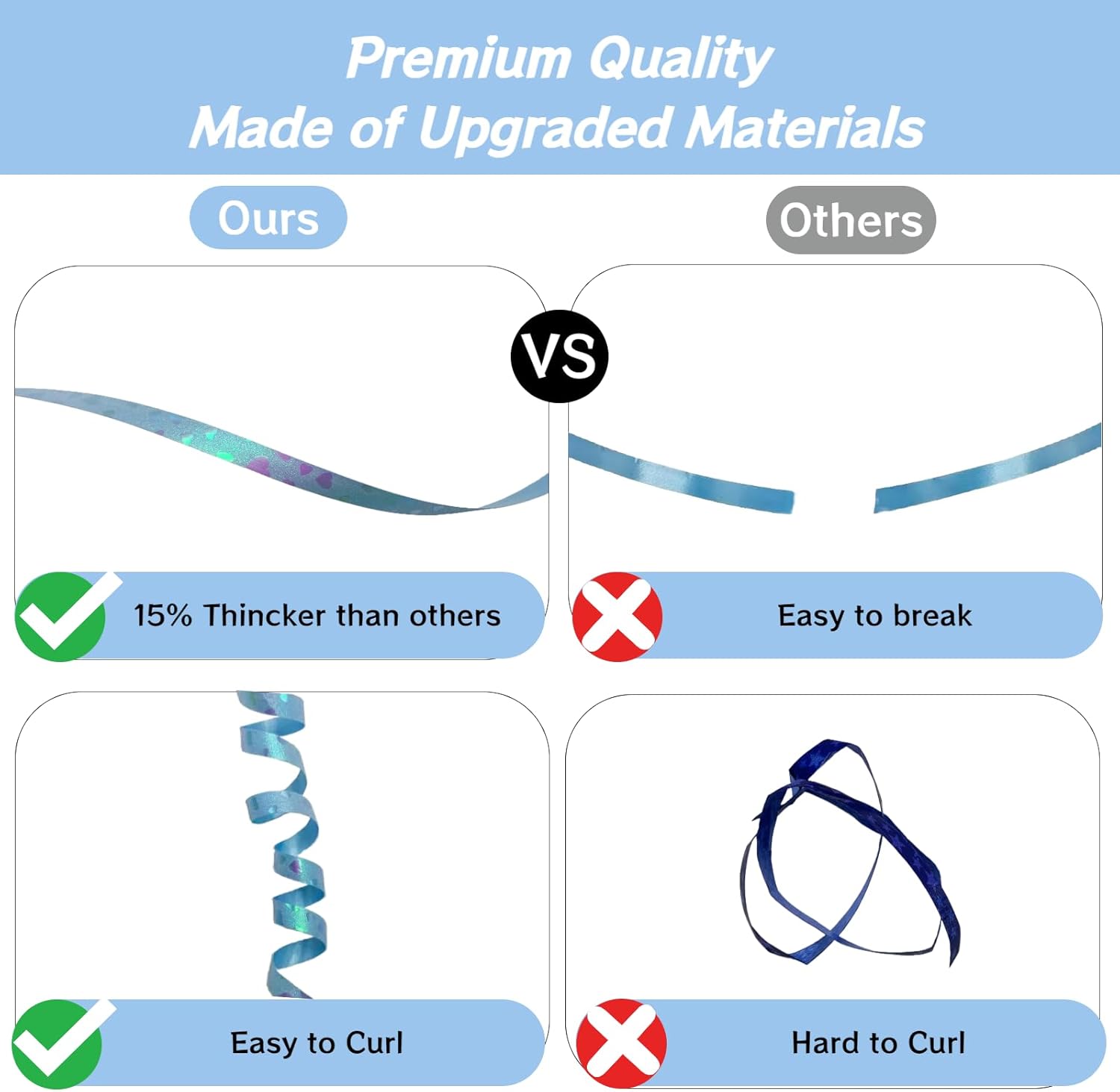 - Sturdy and Thick: The Curling Ribbon for Gift Wrapping is made of upgraded material which provides strong durability and sturdiness. Reusable for multiple party decorating occasions.