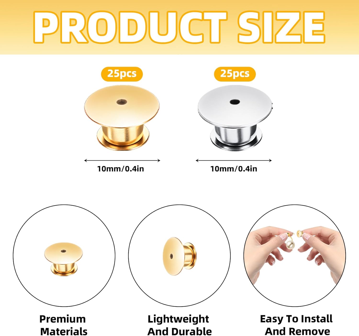 Locking Pin Backs - Enamel Brooch Locks Buckle 50pcs Badge Lapel Button Back Lock for DIY Crafts(Gold and Silver)