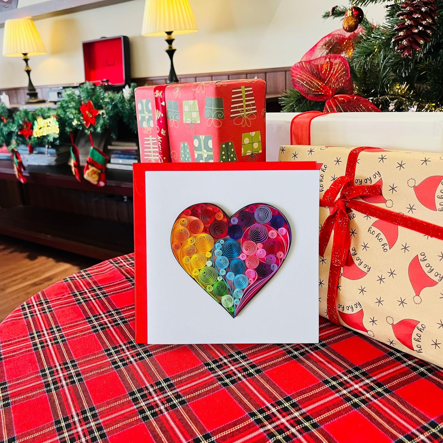 Quilling Cards, handmade card, quilled cards with Handmade Art Quilling birthday card for women, Birthday card, mother... colorful heart design (Heart 4)