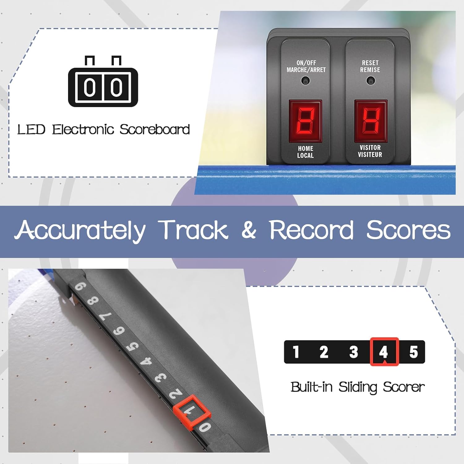 - 【Digital LED Scoreboard】The air hockey game table is designed with manual and digital LED electronic scorekeeping, so you can easily keep track of the score, plus a secure puck dispenser on each side that catches the puck when you score, ensuring continuous and uninterrupted fun.