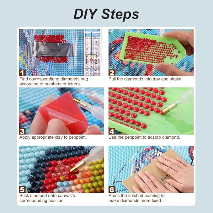 - PACKAGE & SIZE - Diamond art kits package comes with linen canvas, diamonds, tools set, clay. Please note that full diamond painting doesn't include the frame. 12*12inch is the whole canvas size, including blank space. If you want more styles, please click Anuver