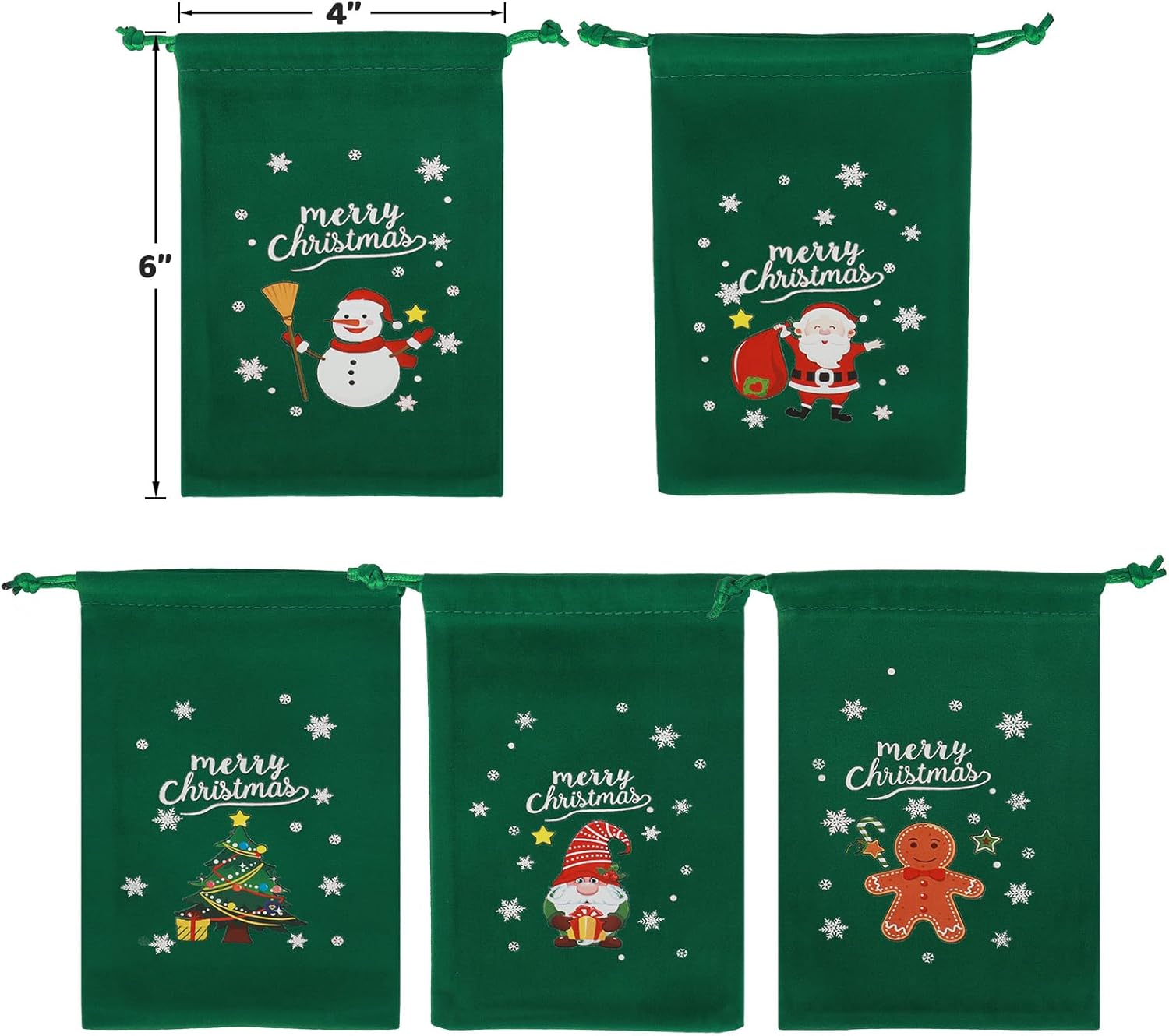 - 5 Festive Designs – Each set includes an even mix of 5 classic Christmas prints: Christmas tree, Santa Claus, Christmas gnome, Gingerbread man, and Snowman. A perfect variety for family, friends, neighbors, coworkers, classmates, or customers—everyone gets a bag they’ll love.