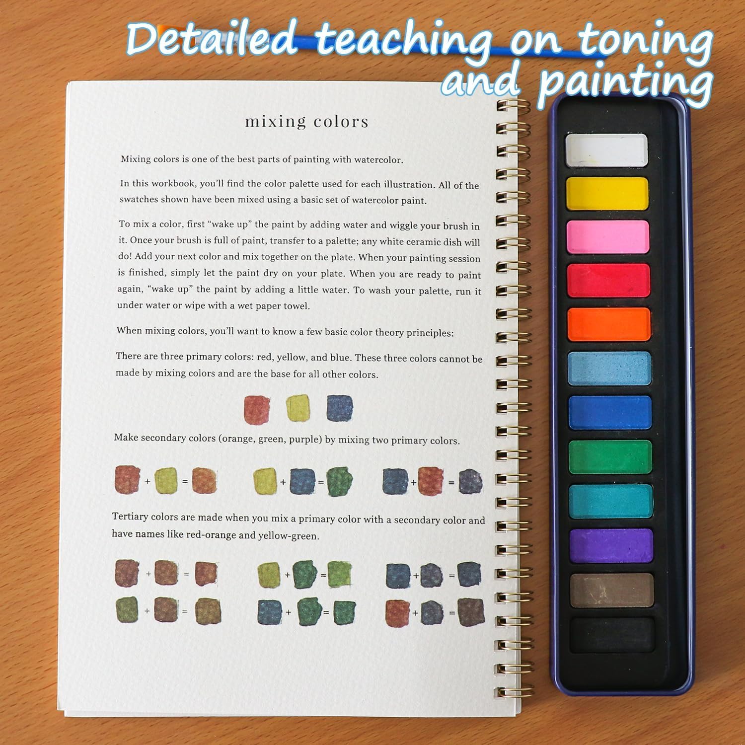 - Healing Gift: If you or your friends, family, or children are an artist who likes color, then the watercolor workbook will be a great gift, with detailed step-by-step instructions and template exercises, allowing you to experience the fun peacefully in watercolor.