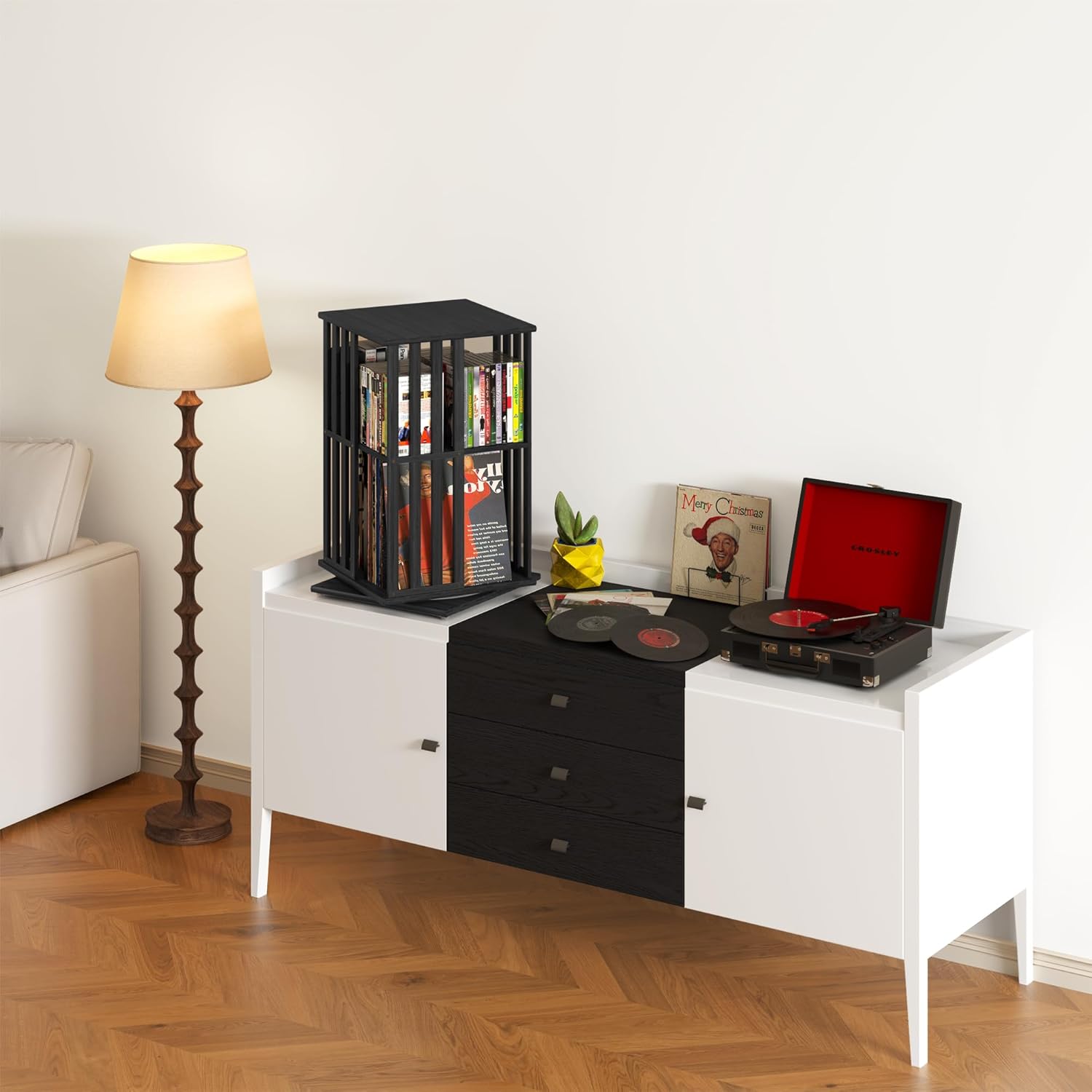 - 360° Rotating Bookshelf with Stable Base: Enjoy effortless organization with this rotating bookshelf towerâsmooth 360° spin lets you find books, movies, or dĂ©cor in seconds without bending or rearranging. The sturdy bamboo base and reinforced structure keep your spinning bookcase stable and wobble-free, even when fully loaded. Ideal for living rooms, bedrooms, home offices, or small apartments.